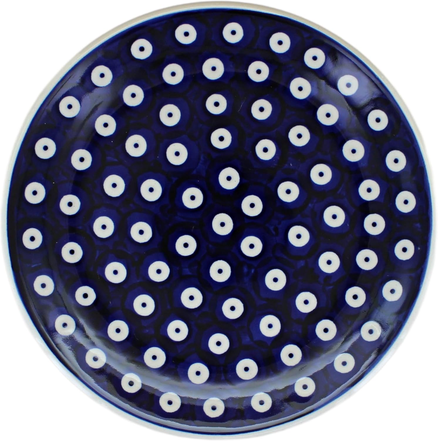 Blue Rose Polish Pottery - Blue Dots Dessert Plate - 7" Diameter - Beautiful Plate for Cake, Appetizers, or Snacks