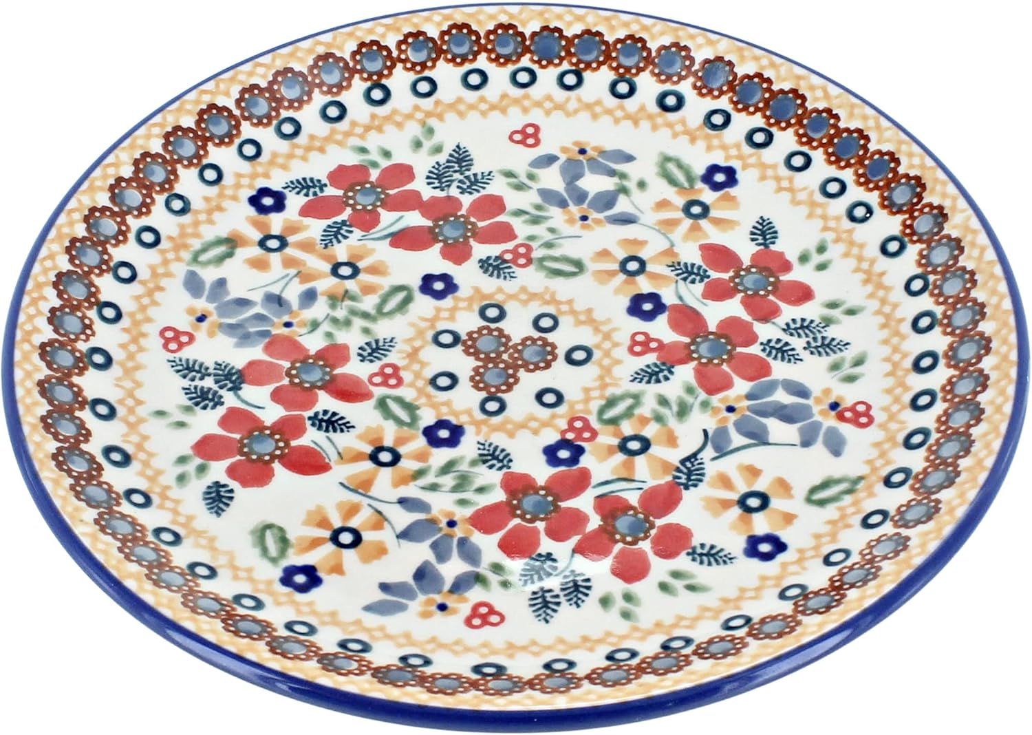Blue Rose Polish Pottery - Red Daisy Dessert Plate - 7" Diameter - Beautiful Plate for Cake, Appetizers, or Snacks