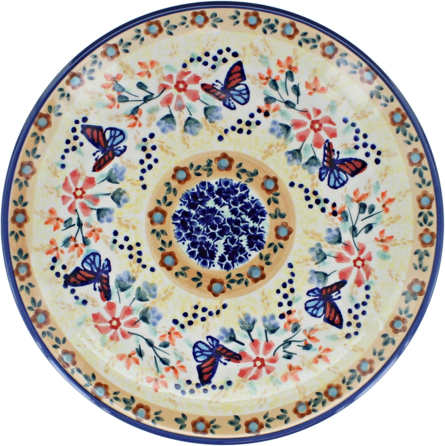 Blue Rose Polish Pottery - Yellow Blue Butterfly Dessert Plate - 7" Diameter - Beautiful Plate for Cake, Appetizers, or Snacks