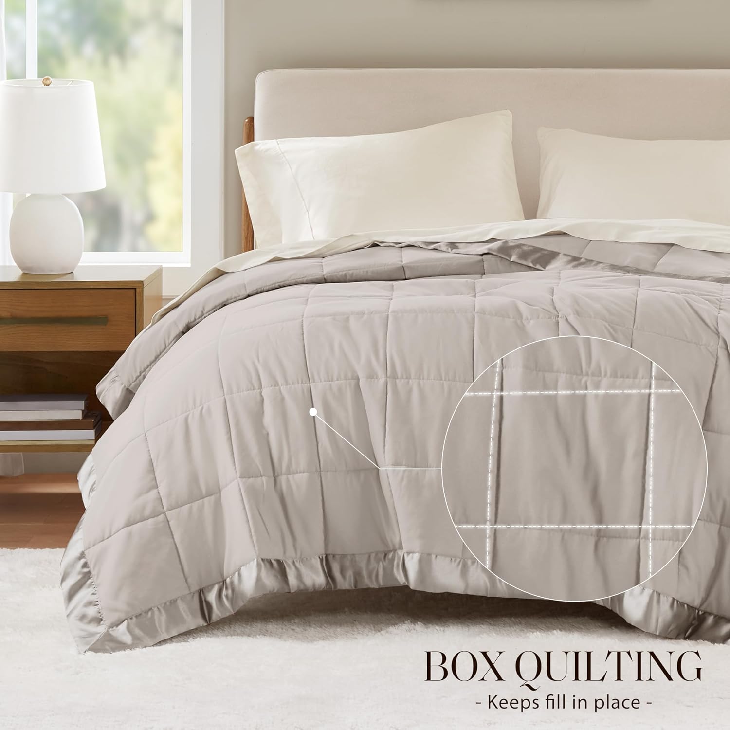 Madison Park Windom Down Alternative Blanket, Premium 3M Scotchgard Moisture Wicking Treatment, Lightweight and Soft Bed Cover For All Season, Satin Trim, Grey Twin
