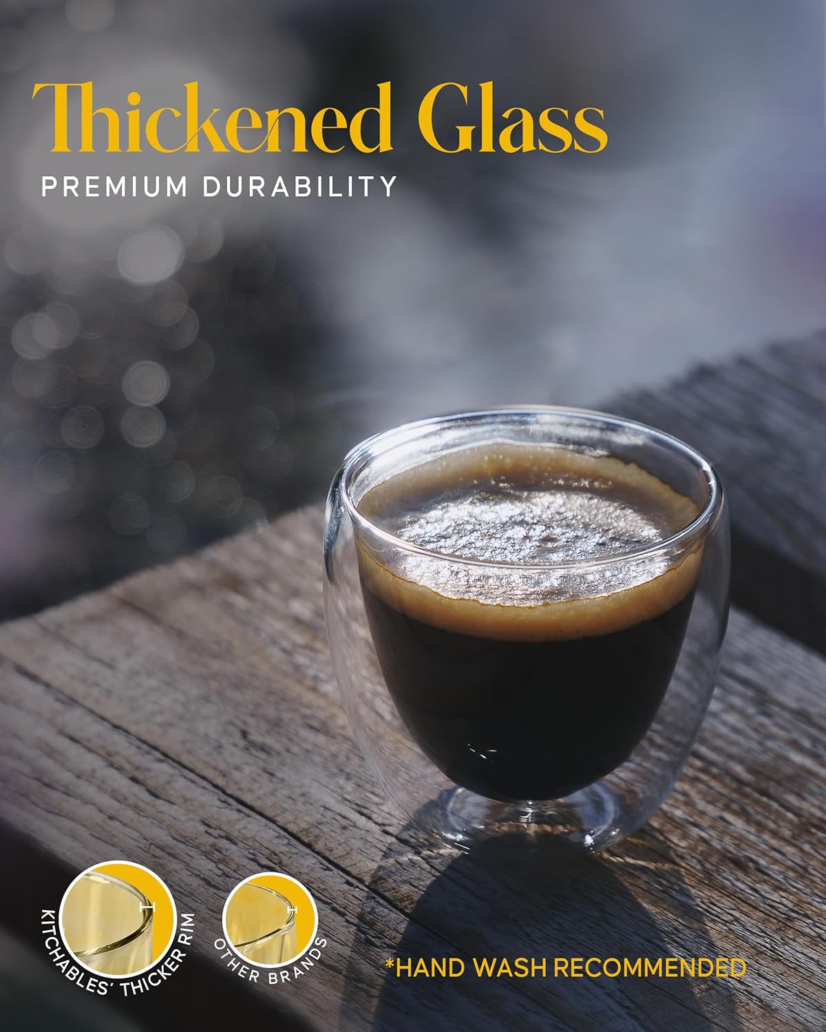 Kitchables Espresso Cups Set of 4, 2.7oz - Durable Double Walled Espresso Shot Glass - Expresso Shots Cup Compatible With Nespresso Machines - demitasse cups - Tasas De Café Expreso