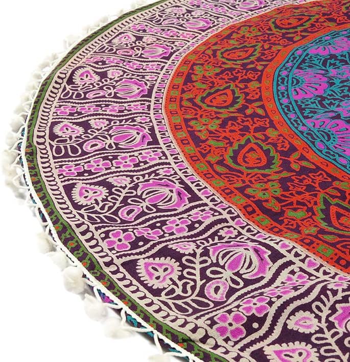 - QUALITY & AUTHENTICITY - These colorful decorative accent pieces are screen printed by hand on 100% premium quality cotton fabric. Our multi colored large round cushions are made with superior quality, impressive durability and for long-lasting use.