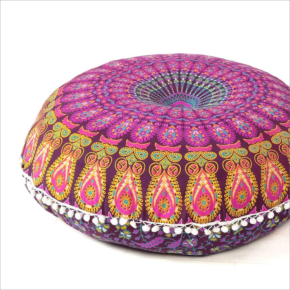 Eyes of India - Mandala Floor Pillow Cover Meditation Cushion Seating Throw Hippie Round Colorful Decorative Bohemian Indian Pouf Ottoman Handmade Cover ONLY (A1 Purple 2, 32" x 32")