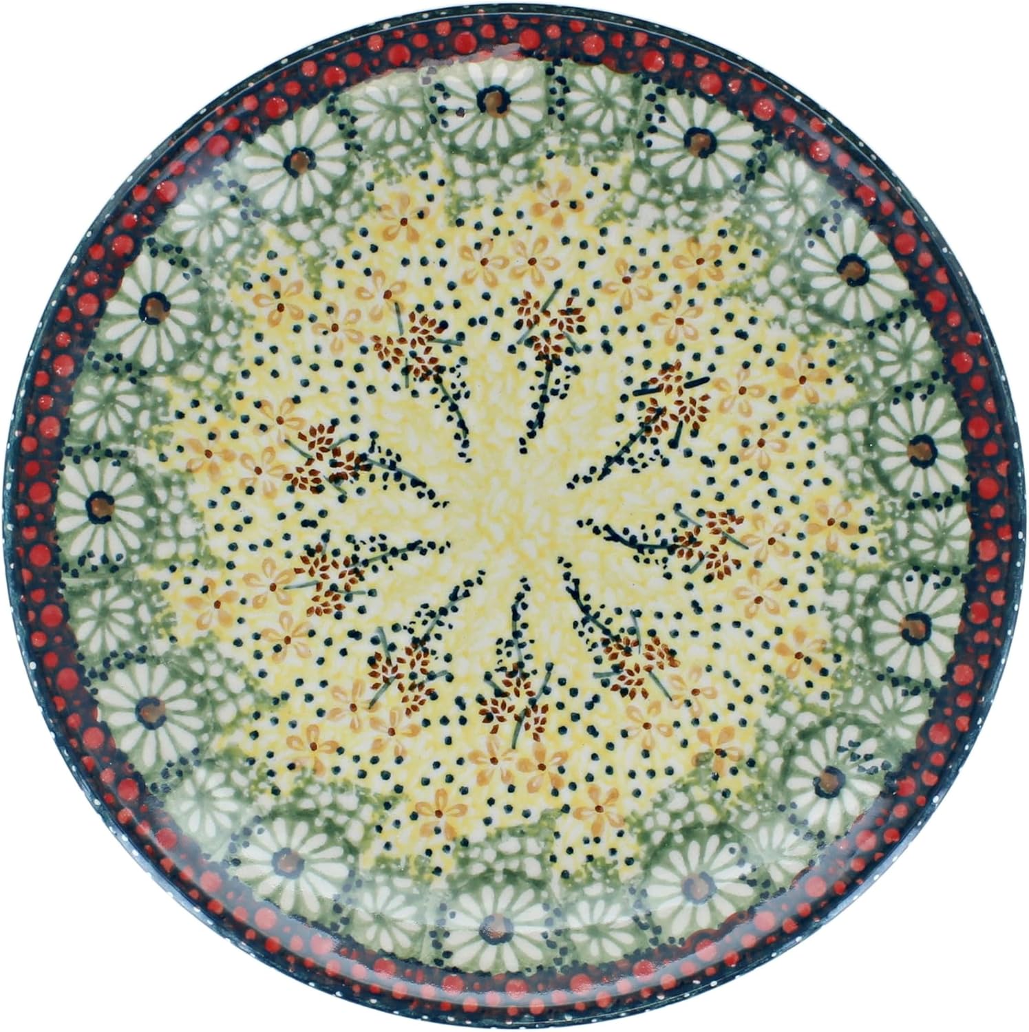 Blue Rose Polish Pottery - Yellow Sunshine Grotto Dessert Plate - 7" Diameter - Beautiful Plate for Cake, Appetizers, or Snacks