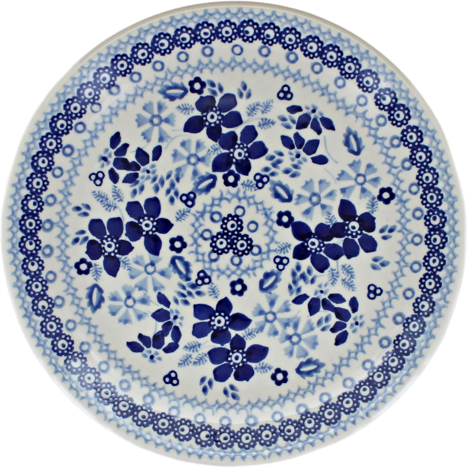 Blue Rose Polish Pottery - Vintage Blue Daisy Dessert Plate - 7" Diameter - Beautiful Plate for Cake, Appetizers, or Snacks