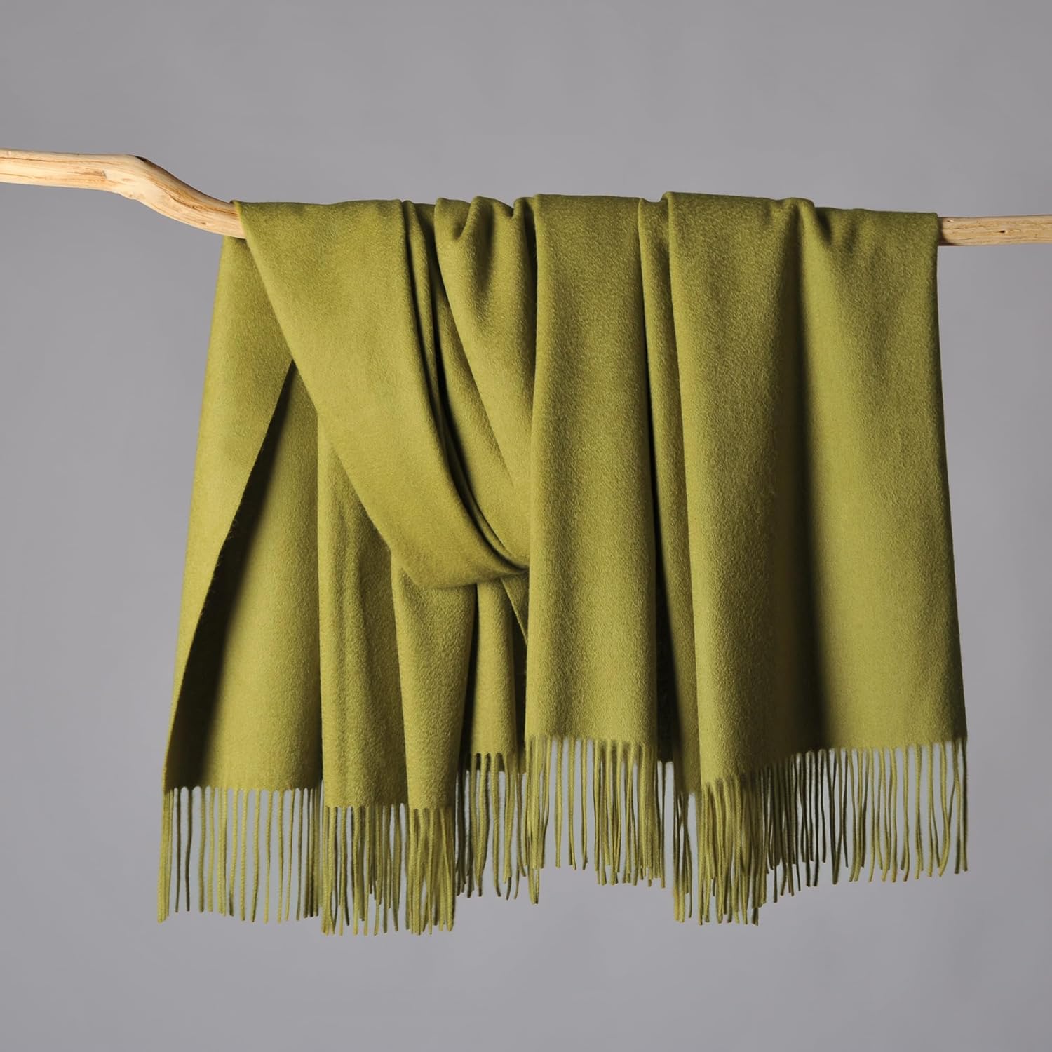 CUDDLE DREAMS Premium Cashmere Throw Blanket with Fringe, Luxuriously Soft (Bamboo Green)