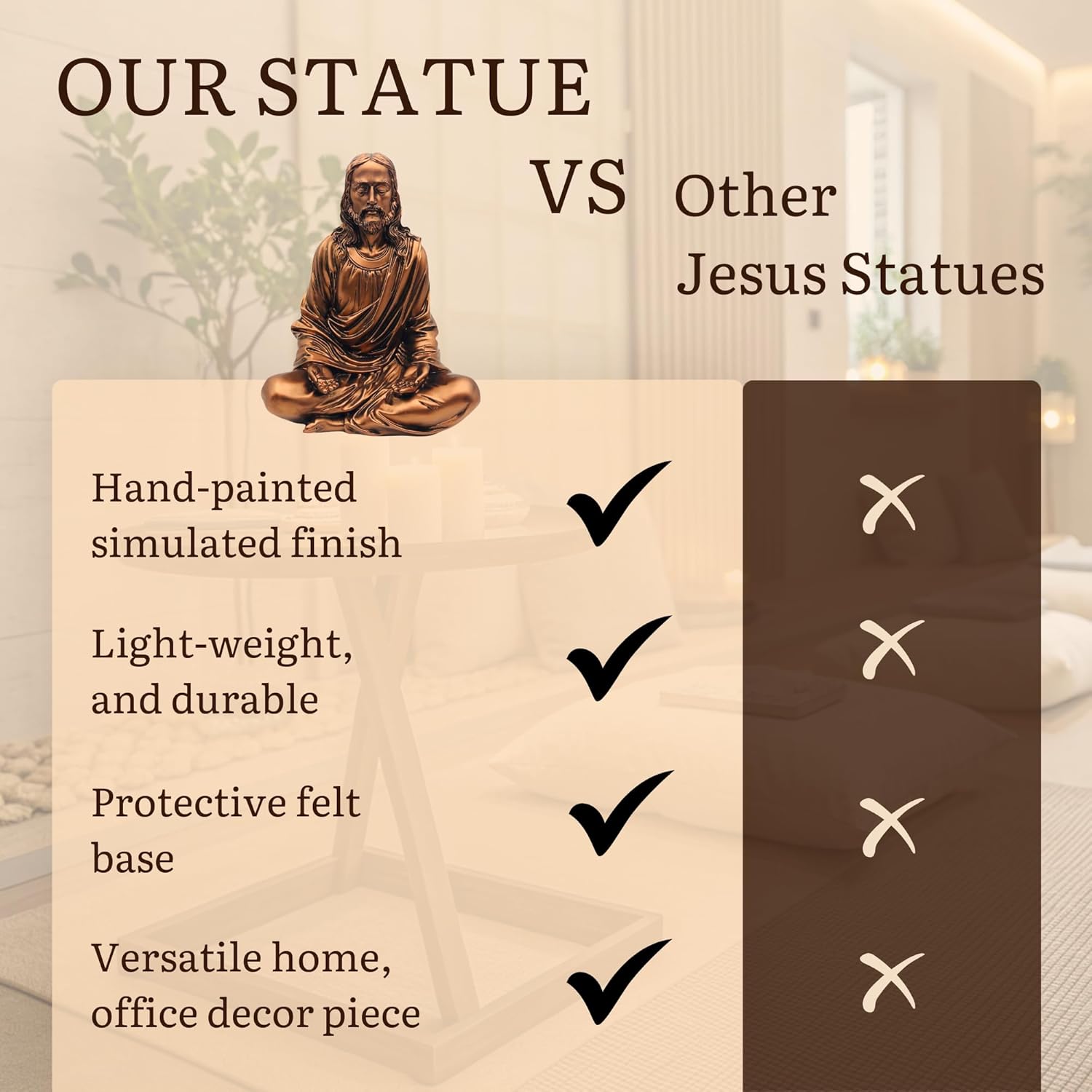 - - Hand-painted simulated bronze finish: Our Jesus meditation figurines feature a simulated bronze finish, hand-painted to achieve an authentic, timeless look. Perfect for adding a touch of spirituality to your home decor.