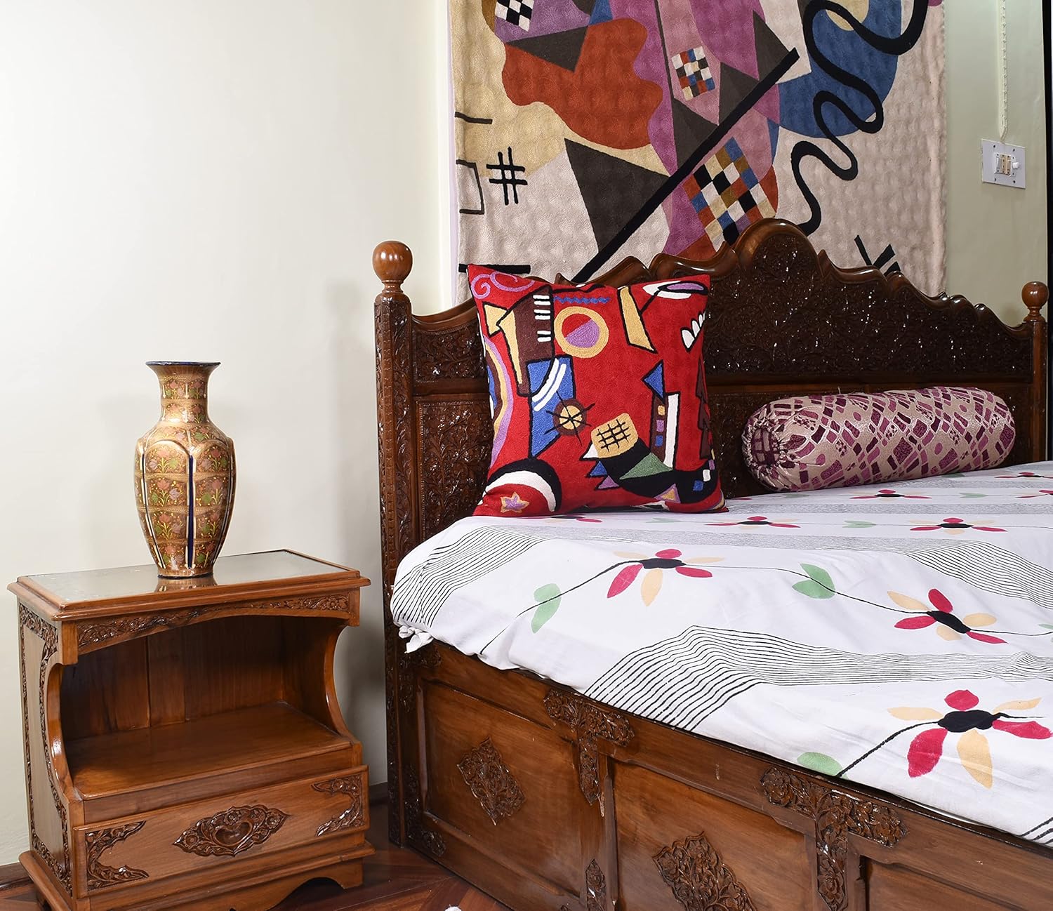 Kandinsky Red Abstract Pillow Cover Gegen Modern Pillowcase Scarlet Reds Abstract Chair Cushion Contemporary Pillow Farmhouse Pillows Couch Handembroidered Wool Size 18x18