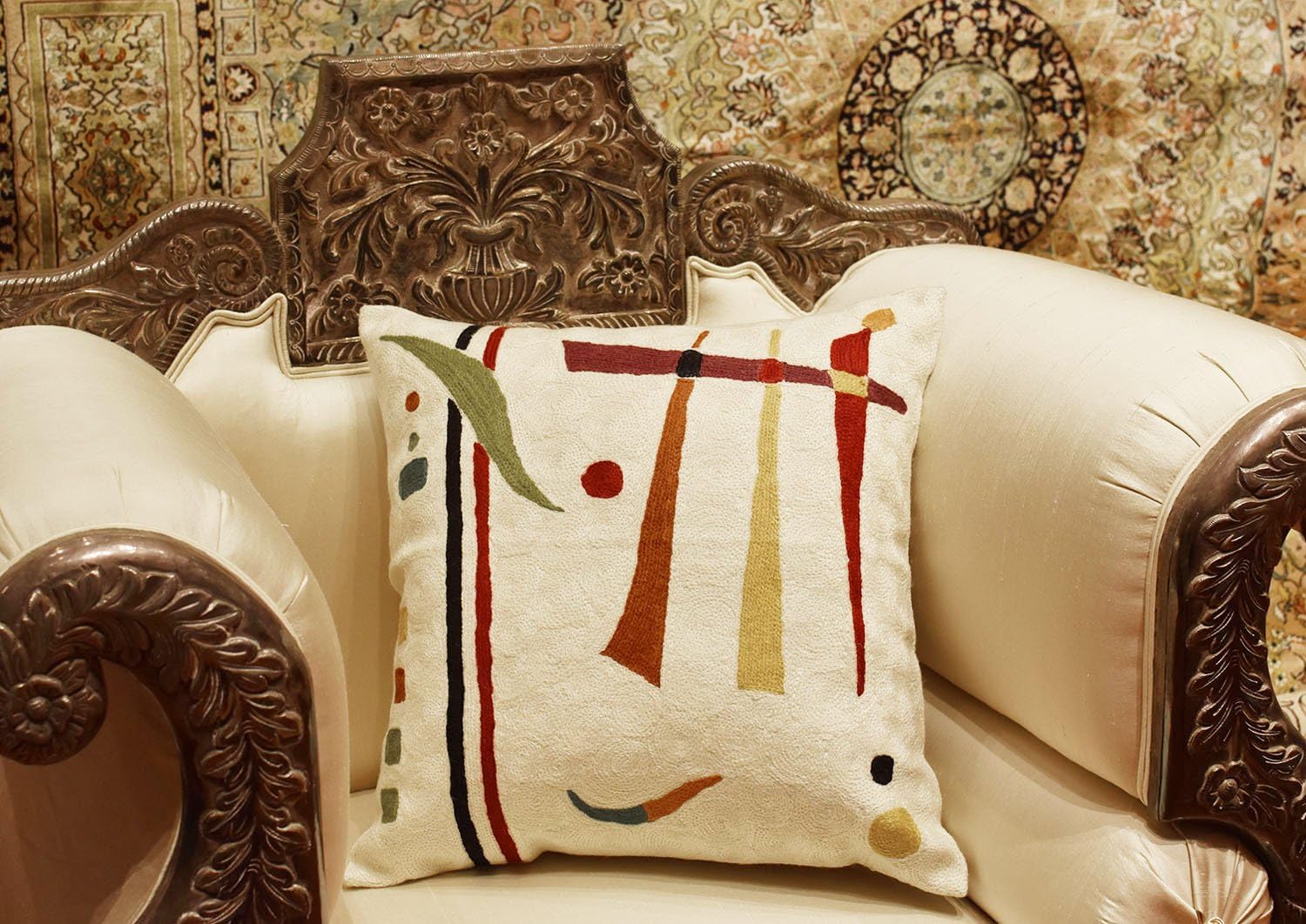 Kandinsky Contemporary Throw Pillow Cover - Cream | Modern Pillow Cases | Abstract Throw Pillows | Modern Boho Pillow | Abstract Chair Cushions | Hand Embroidered Cushion | Wool Size 18x18