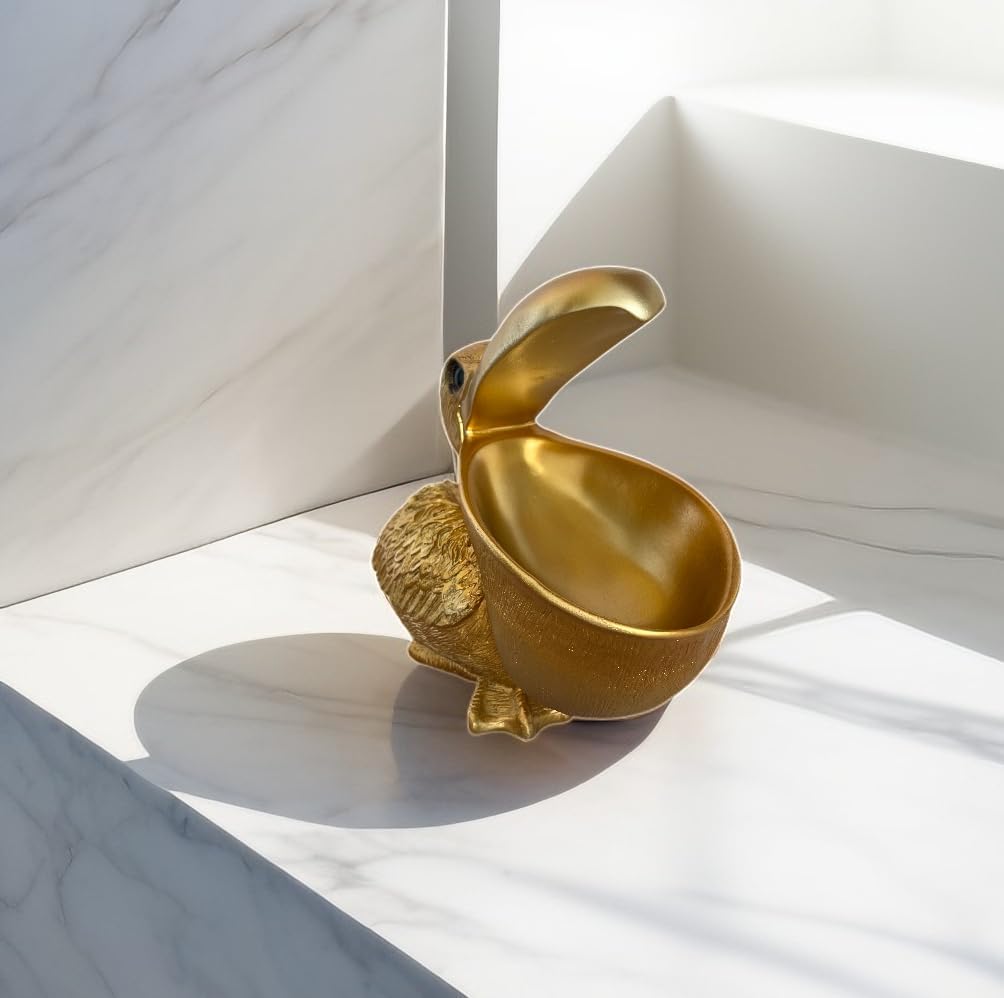 Creative Resin Statues The Pelican Statue Birds Figurines,Cell Phone and Keys Holder Adornments for Home & Office Desk Decor 8.1" inches (Gold)