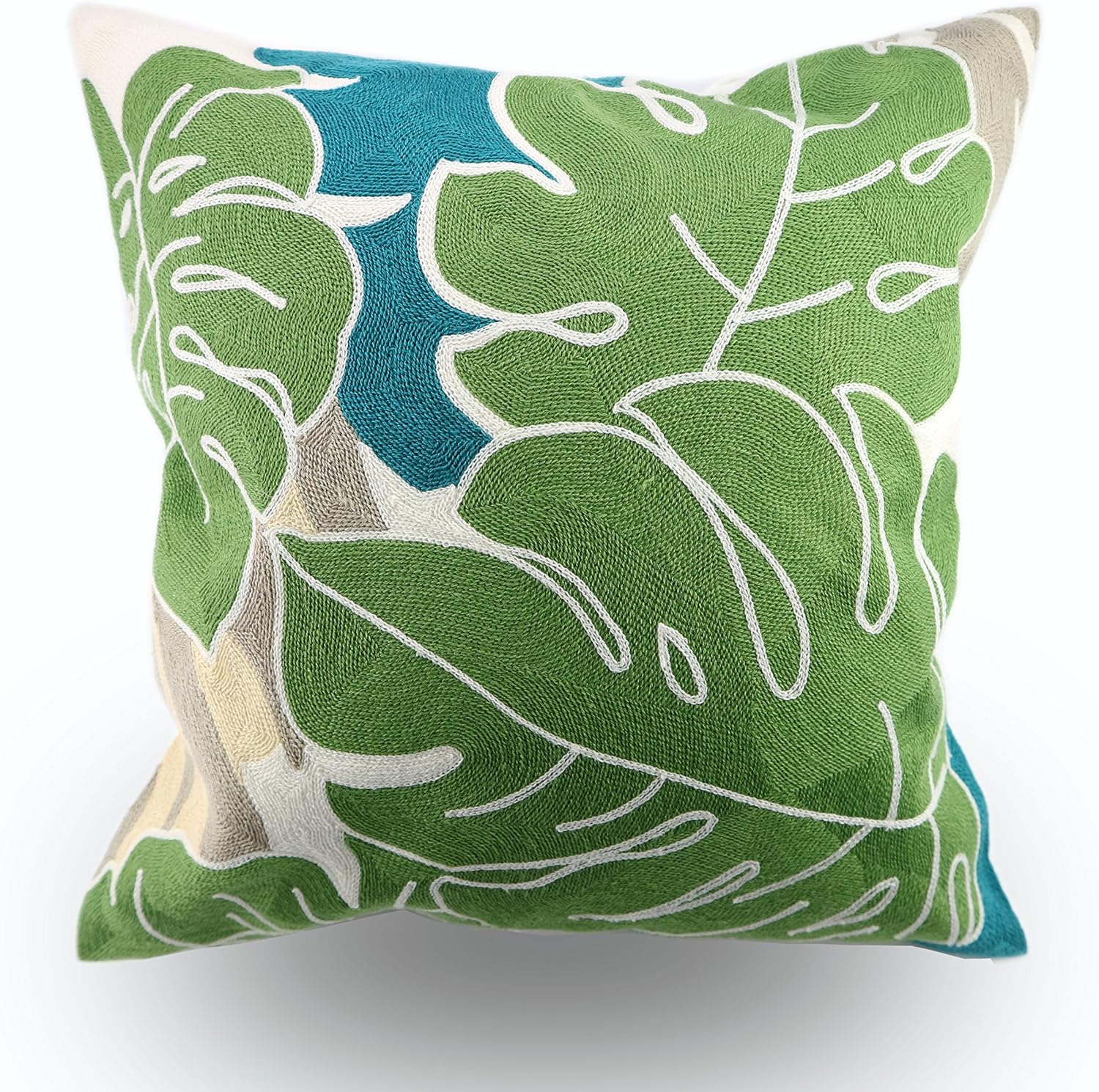 - 4 Pieces Tropical Green Leaves: This amazing embroidery pillow cover is designed with unique patterns. Throw pillows with tropical green leaves are always suitable for functional and decorative purposes, such as for bed, couch, sofa, chair, office, etc.