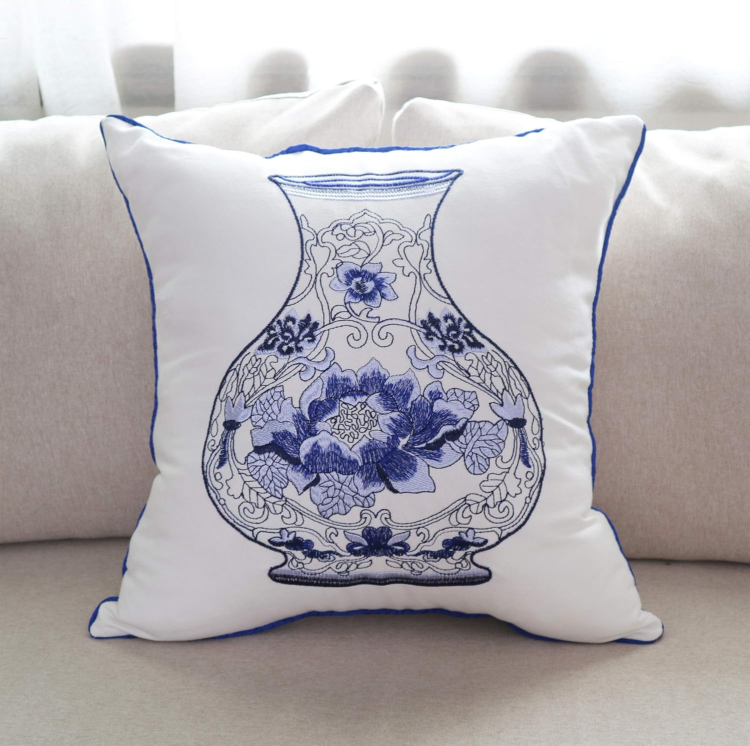 - Best Gift: Traditional Chinese white and blue porcelain round bottles embroidery pillow cover. Amazing vase and wine pot designed pillow covers are always suitable for functional and decorative purposes, such as for bed, couch, sofa, chair, office, etc. It is a greatest present as well.