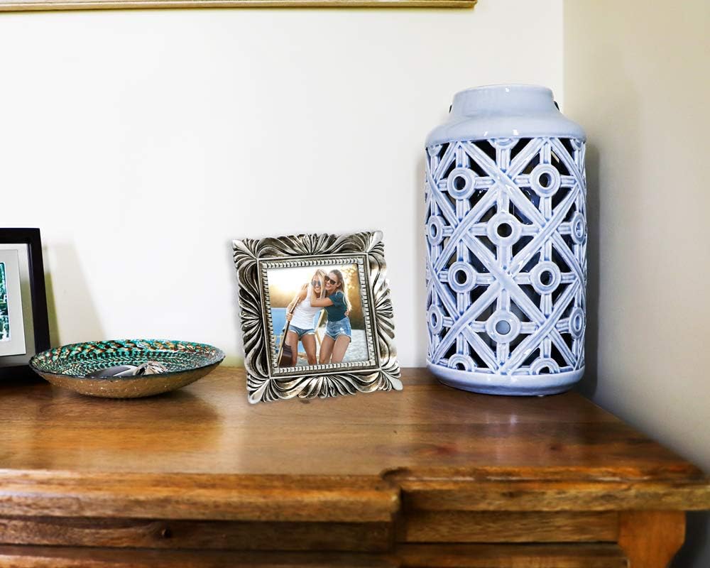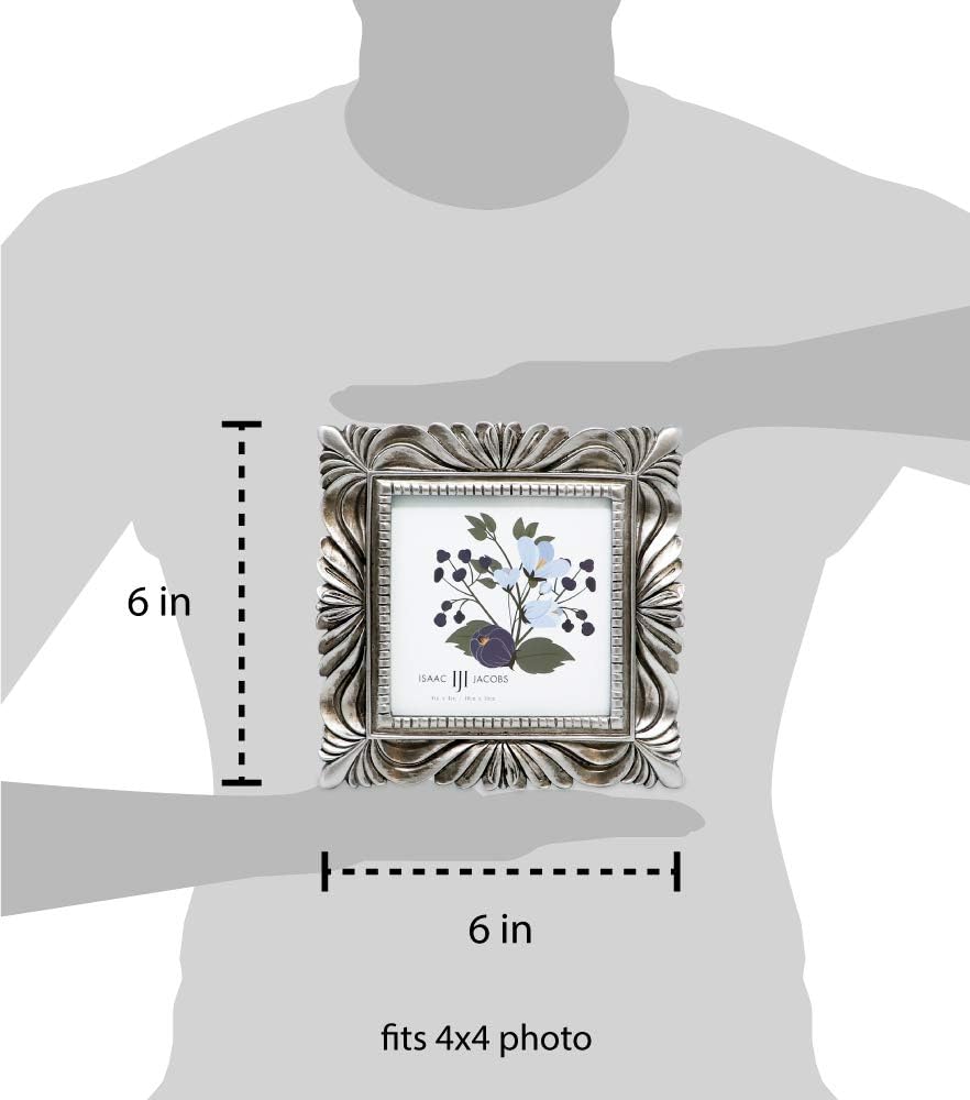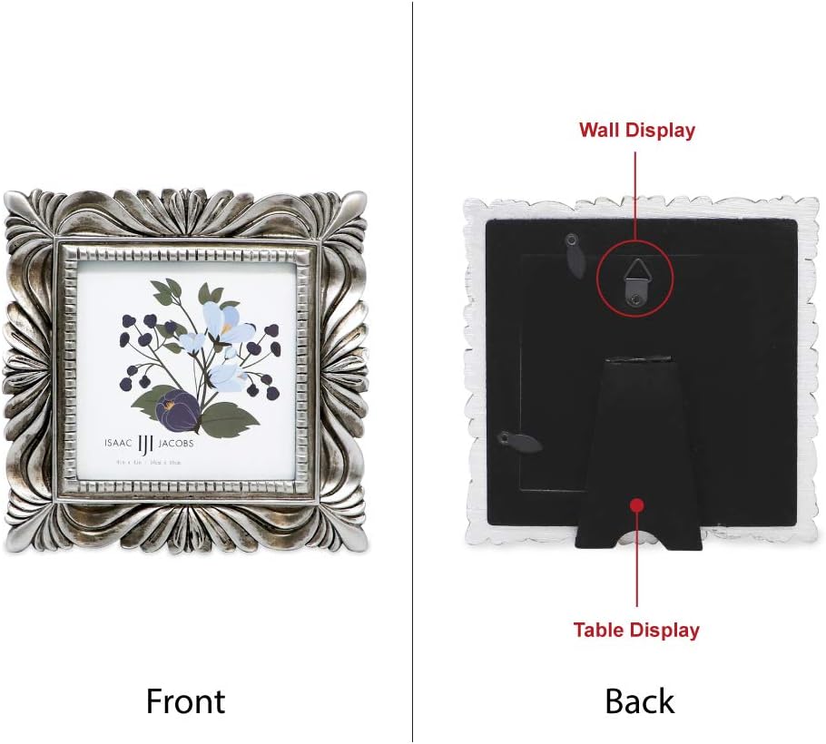 Isaac Jacobs 4x4 Silver Wave Textured Hand-Crafted Resin Picture Frame with Easel & Hook for Tabletop & Wall Display, Decorative Swirl Design Home Décor, Photo Gallery, Art, More (4x4, Silver)