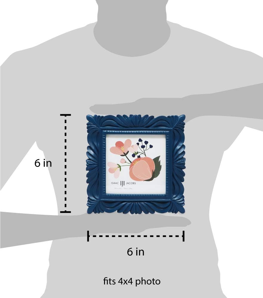 Isaac Jacobs 4x4 Navy Wave Textured Hand-Crafted Resin Picture Frame with Easel & Hook for Tabletop & Wall Display, Decorative Swirl Design Home Décor, Photo Gallery, Art, More (4x4, Navy)