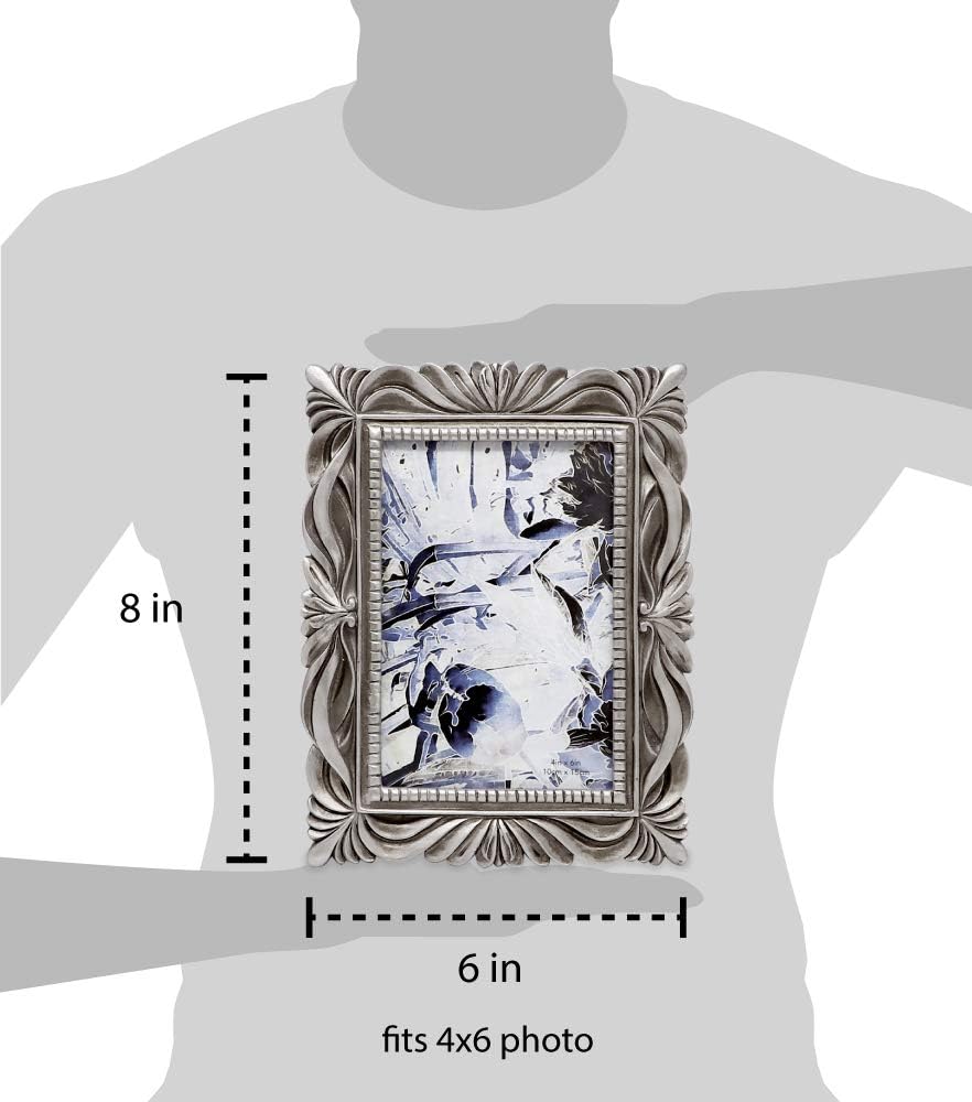 Isaac Jacobs 4x6 Silver Wave Textured Hand-Crafted Resin Picture Frame with Easel & Hook for Tabletop & Wall Display, Decorative Swirl Design Home Décor, Photo Gallery, Art, More (4x6, Silver)
