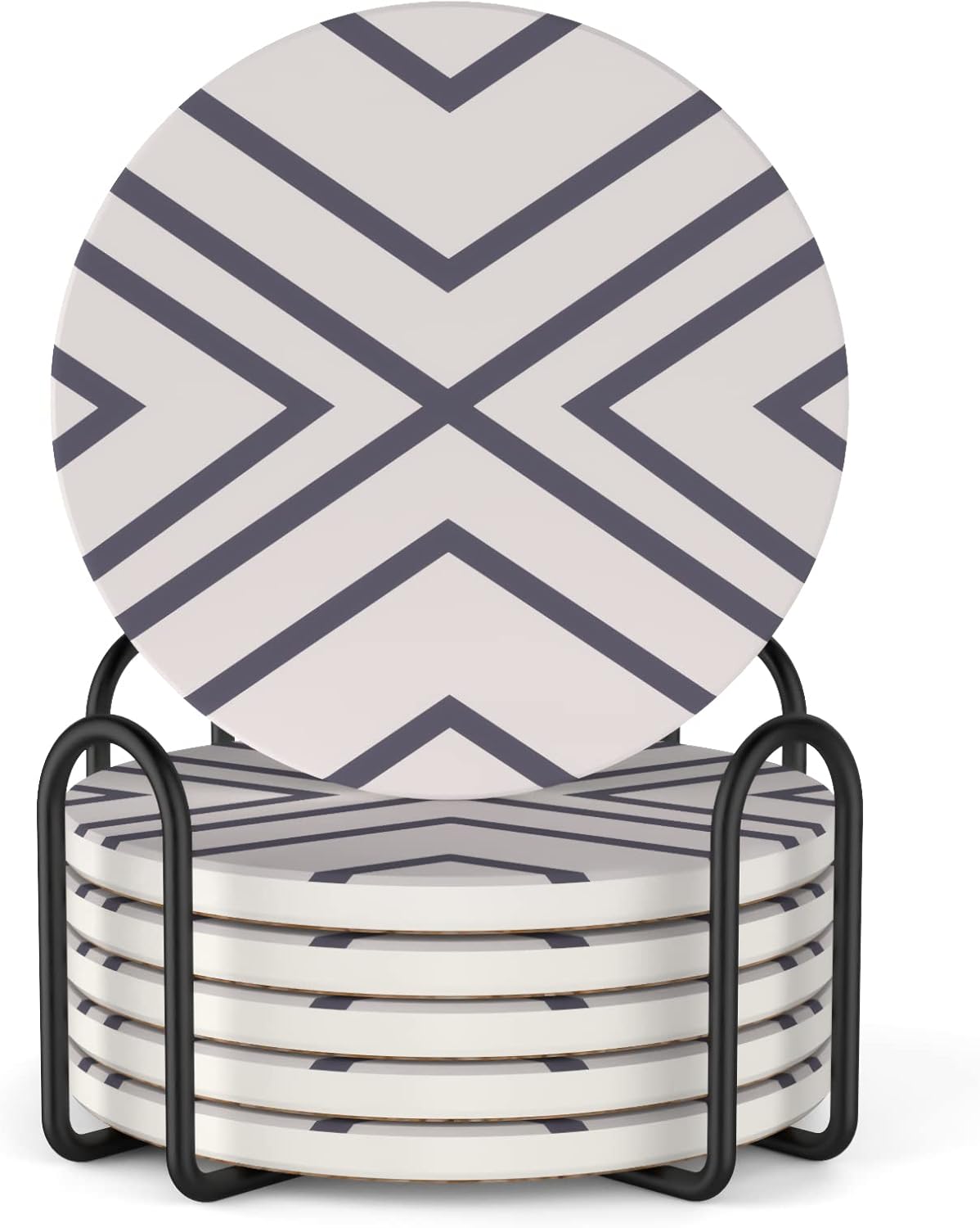 Lifver 6 Piece Absorbent Stone Coaster Set with Holder,Drink Spills Coasters, Grey-Lines