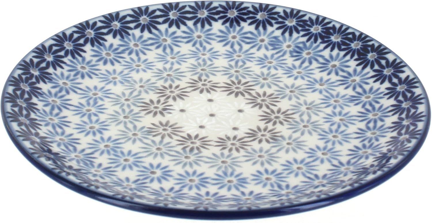 Blue Rose Polish Pottery - Blue Harmony Dessert Plate - 7" Diameter - Beautiful Plate for Cake, Appetizers, or Snacks
