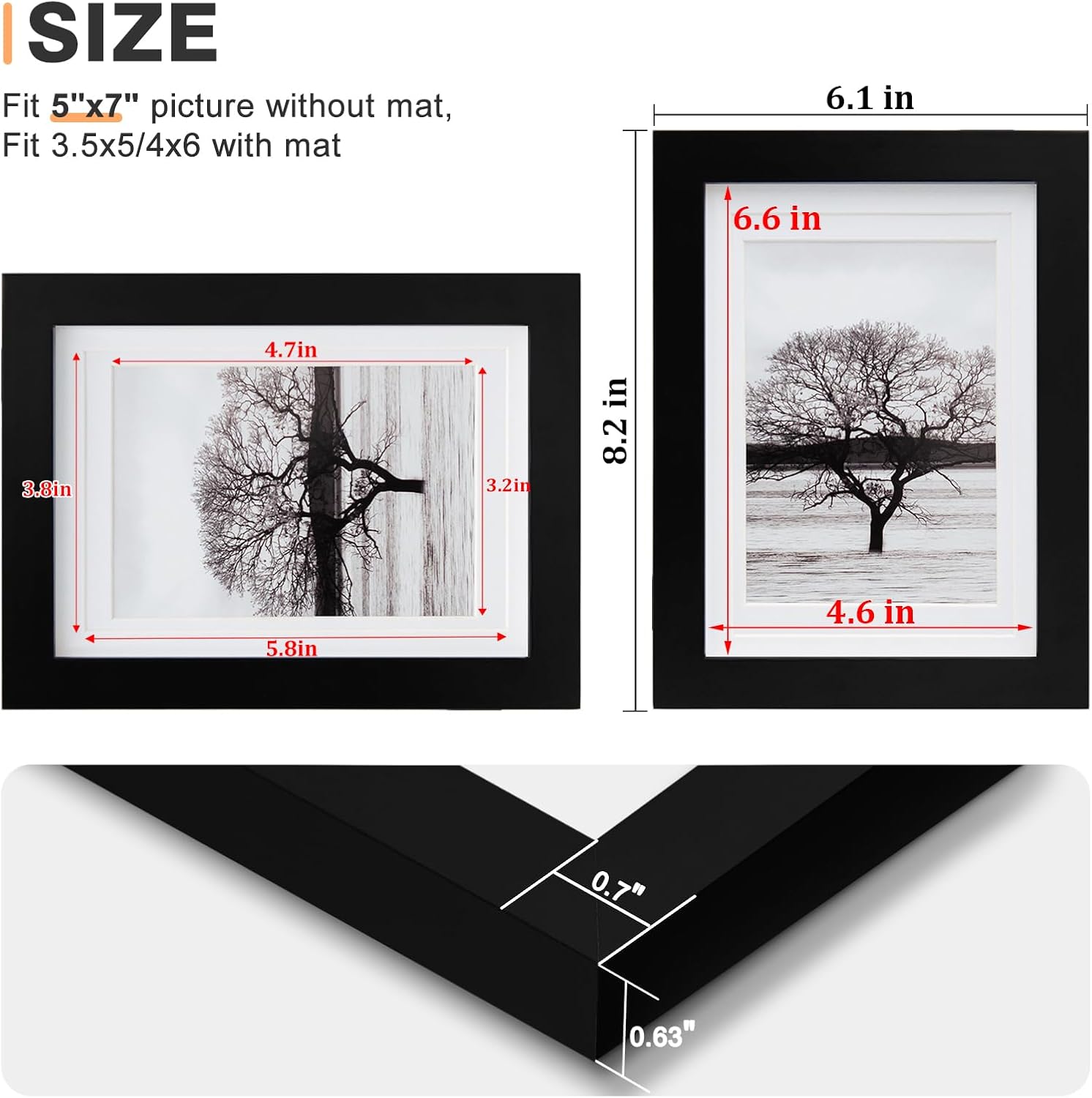 - FRAME DIMENSION - Black frames 5x7 Overall dimension is 5.9x7.9 inch, back opening size is 5x7 inch, opening size is 4.5x 6.5 inch, mat size is 4x6 inch and 3.5x5 inch. 5x7 black frames could dress up any room in your home or office, Great gift for festival, Father's Day, Mother's day and best friend birthday.