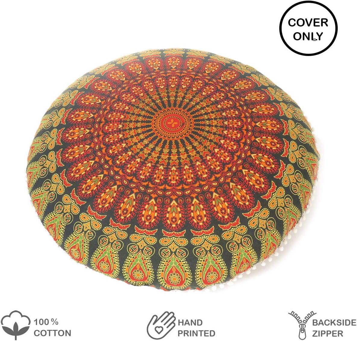 - QUALITY & AUTHENTICITY - These colorful decorative accent pieces are screen printed by hand on 100% premium quality cotton fabric. Our multi colored large round cushions are made with superior quality, impressive durability and for long-lasting use.