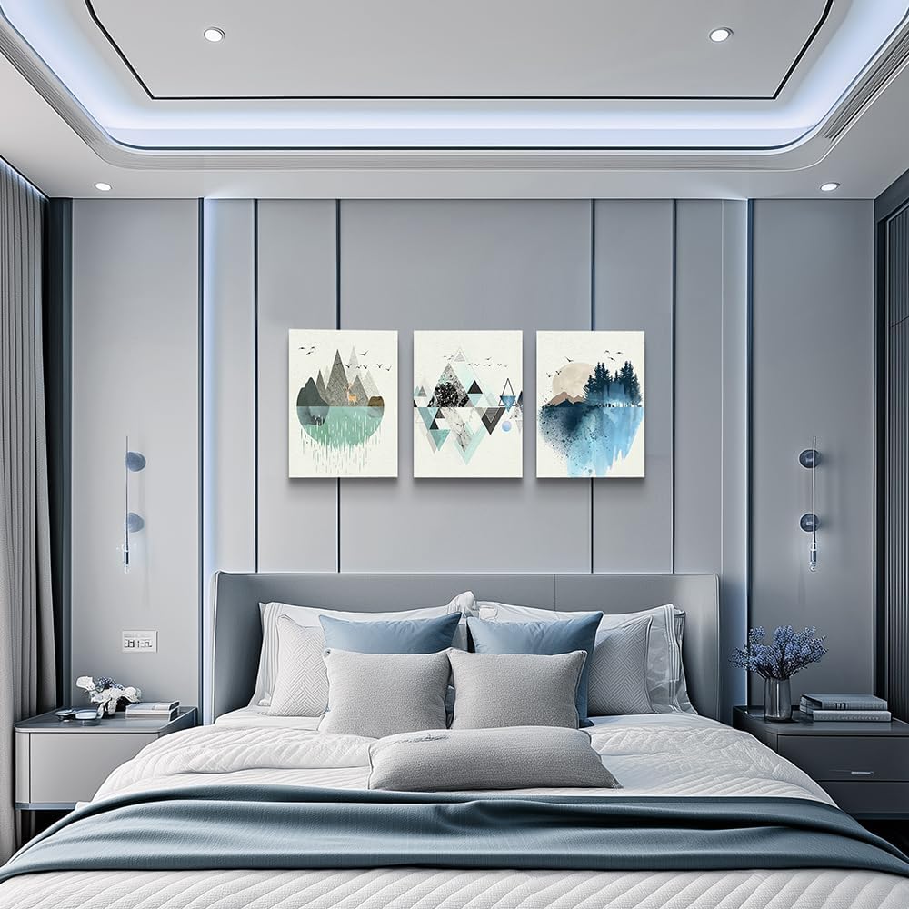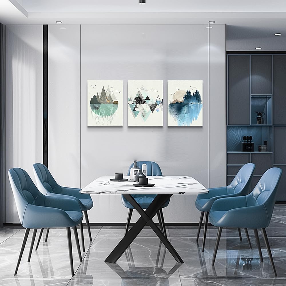 MHARTK66 Canvas Wall Art - Abstract Geometry Mountain Wall Artworks, 3 Panels, 12x16 inch, 3 Piece Set for Living Room, Office, Bedroom, Bathroom Home Decoration