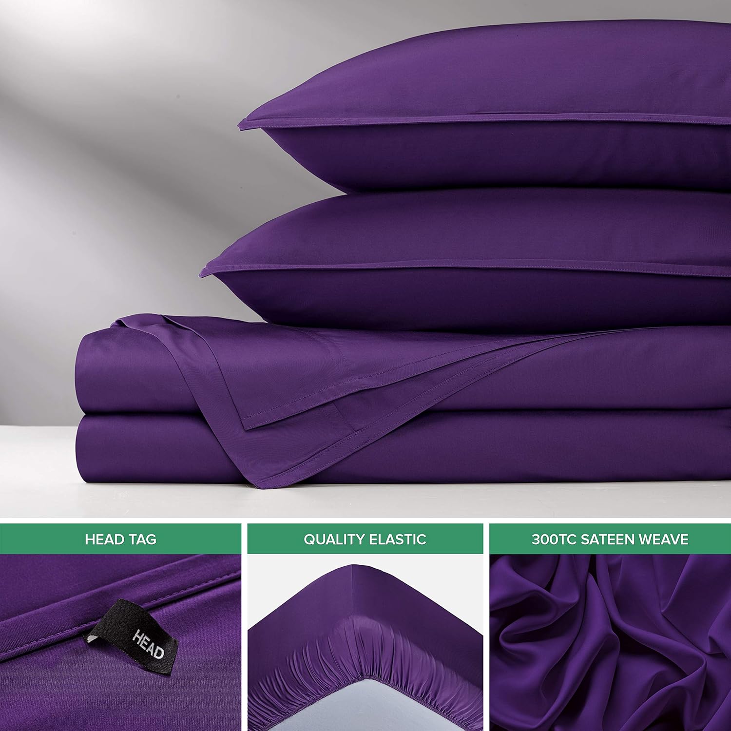 Full Sheets by Pure Bamboo, Genuine 100% Organic Viscose Derived from Bamboo Bed Sheet Set, Luxuriously Soft & Cooling, Double Stitching (Full, Purple)