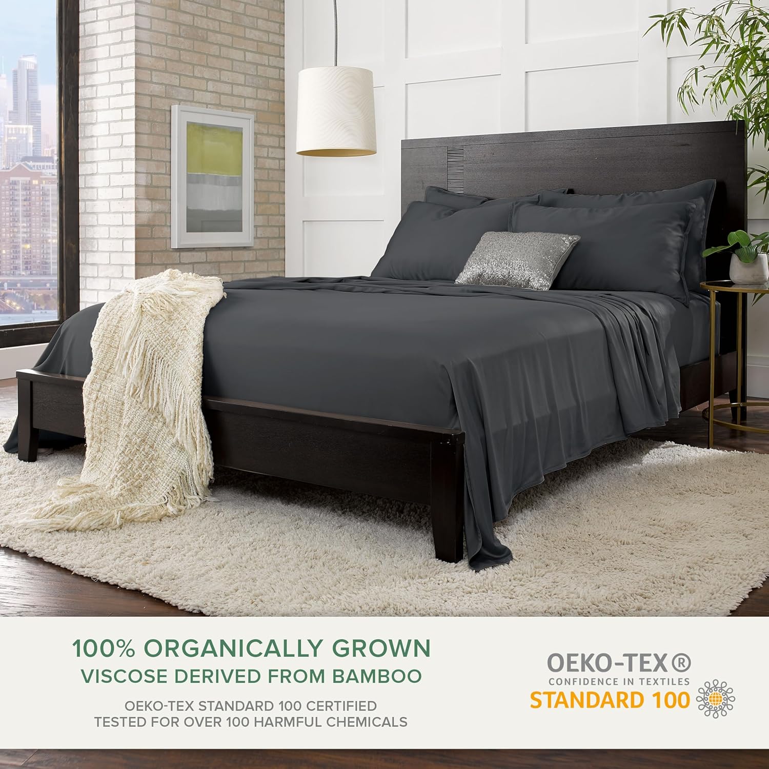 Full Sheets by Pure Bamboo, Genuine 100% Organic Viscose Derived from Bamboo Bed Sheet Set, Luxuriously Soft & Cooling, Double Stitching, 2 Year Quality Promise (Full, Charcoal)