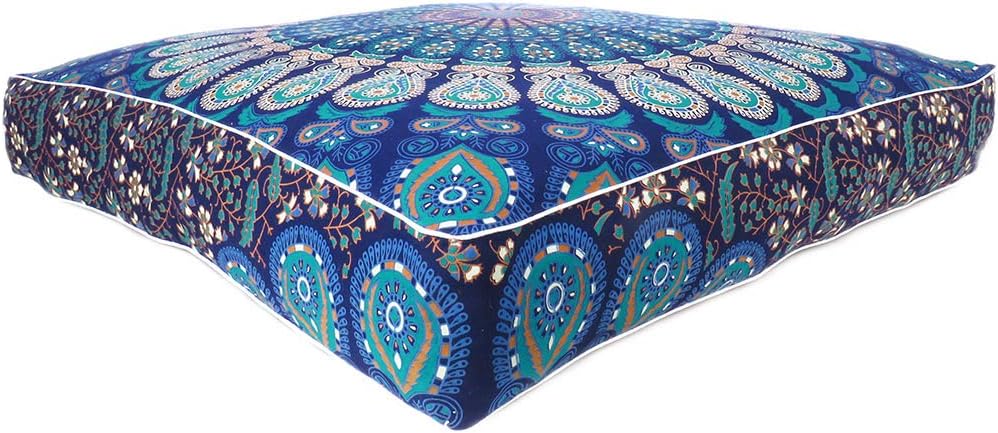 Eyes of India - Mandala Floor Pillow Cover Meditation Cushion Seating Throw Hippie Round Colorful Decorative Bohemian Indian Pouf Ottoman Handmade Cover ONLY (Dark Blue-1, 35" x 35")