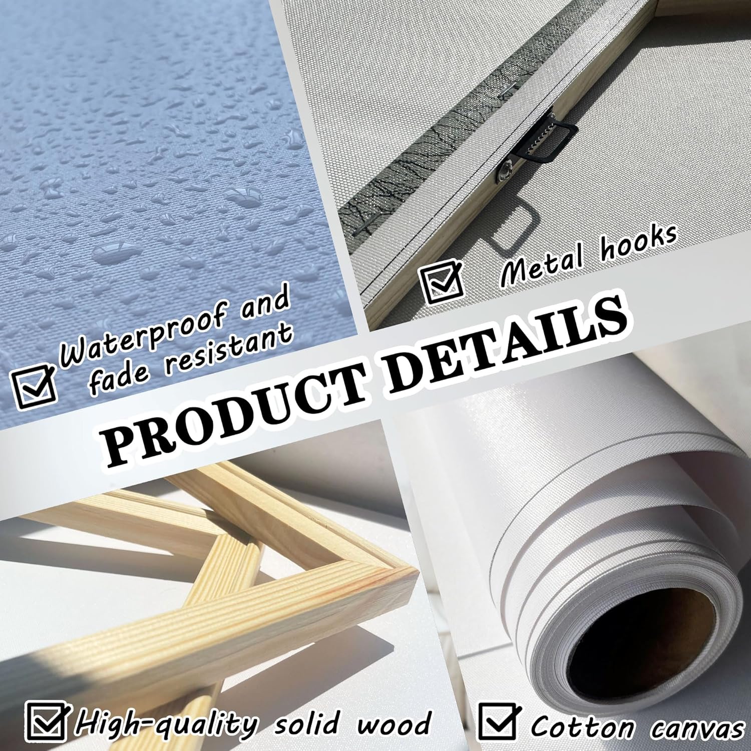 - Paintings for Living Room:this canvas wall art is framed,the frames made with light wood,have black hooks and white nails,it is easy to hang.wrap in plastic wrapper and sealed in carton,protect the canvas picture.