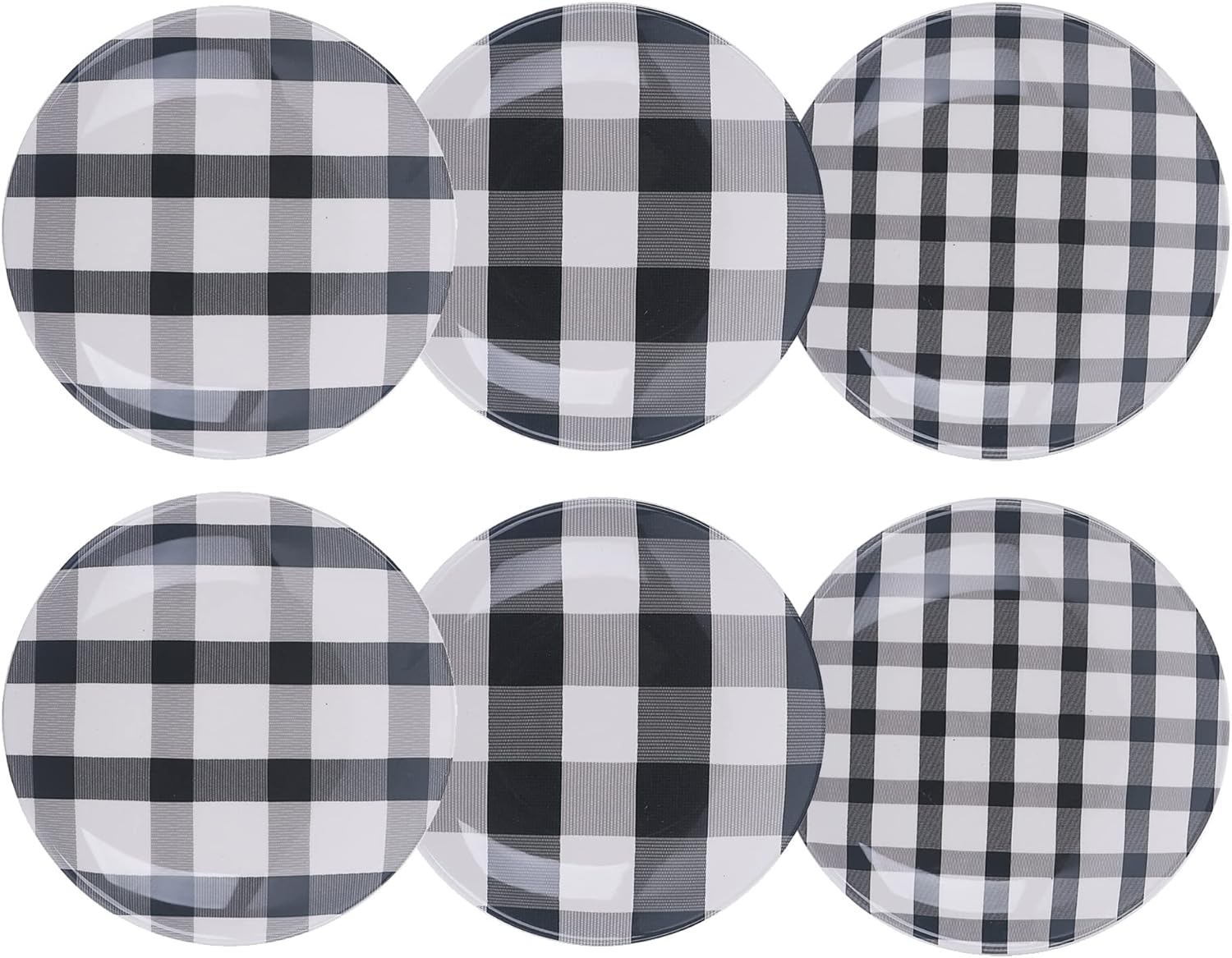 Bico Plaid Check Black and White Appetizer Plates Set of 6, 6 Inch Small Ceramic Dessert Plates for Snacks, Salad, Tablescape, Microwave and Dishwasher Safe, Gift for Housewarming and Thanksgiving