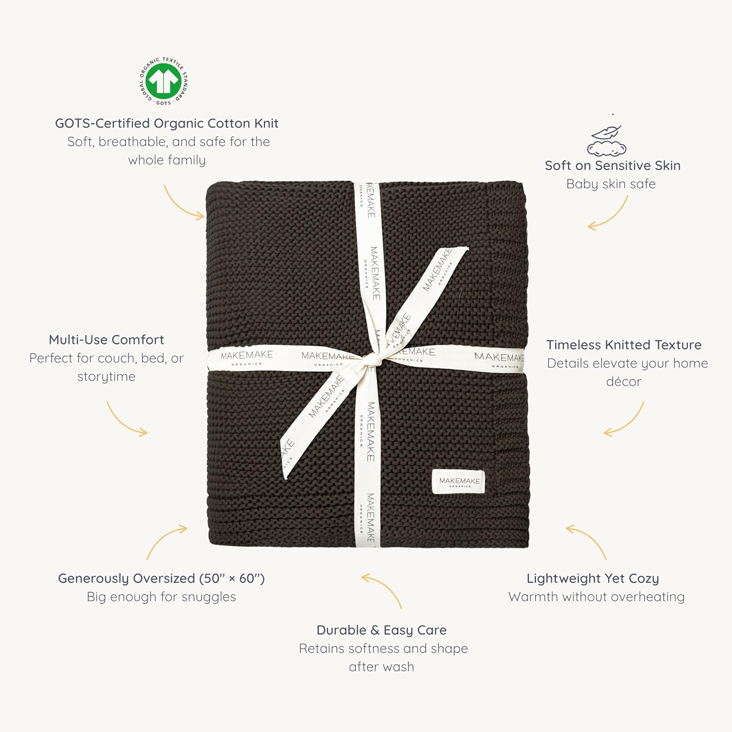 MakeMake Organics Organic Throw Blanket GOTS Certified Organic Cotton Blanket Knit Couch Bed Fall Colors Soft Neutral Cotton Throw Blanket Large (50x60, Charcoal Grey)