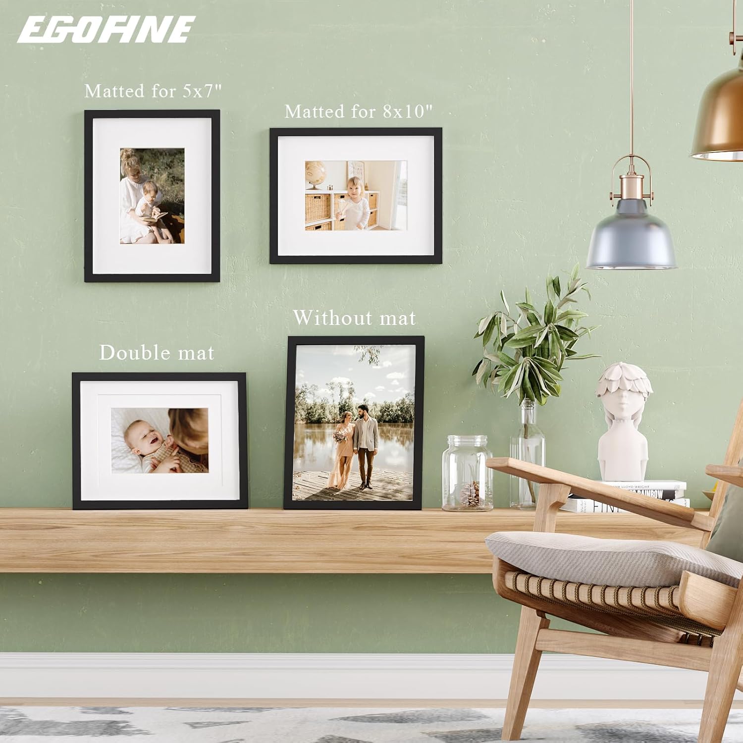 Egofine 11x14 Picture Frames Set of 4, Made of Solid Wood Covered by Plexiglass 5x7 and 8x10 with Mat or 11x14 without Mat, for Table Top Display and Wall Mounting Photo Frame Black