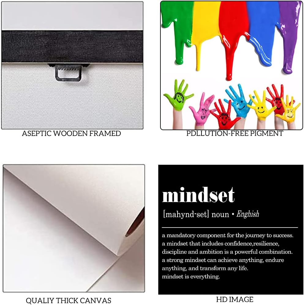 Inspirational Framed Office Home Wall Art with Mindset Verb Artwork Black and White Motivational Gifts for Men Mindset Is Everything Quotes Wall Decor Ready to Hang-12 inch x 18 inch