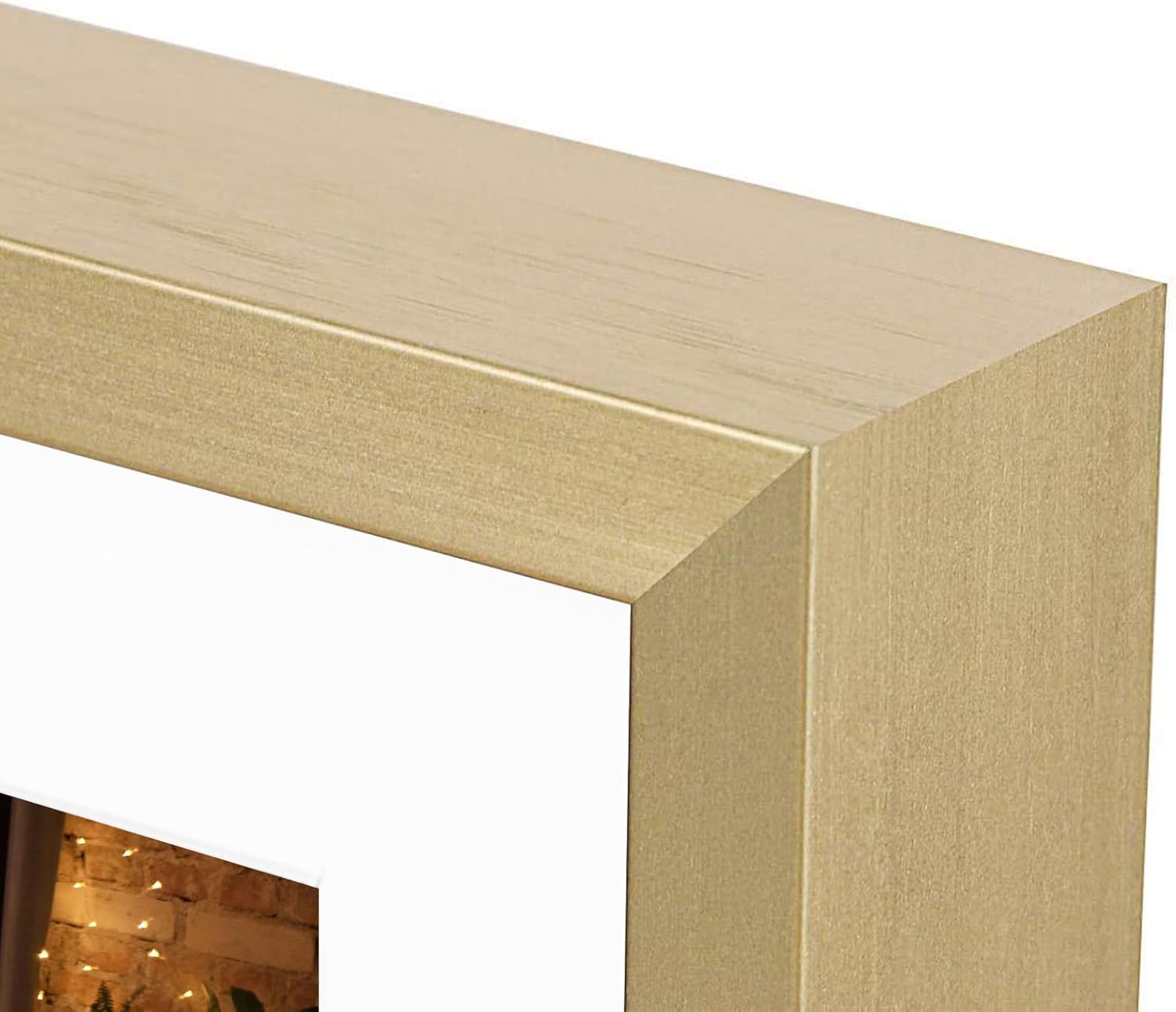 Frametory - 8.5x16.3 Aluminum Collage Picture Frame - Display 5x7 Pictures with 3 Openings Mat - Real Glass Front - Horizontal/Vertical Wall Mount - Gold 1 Pack