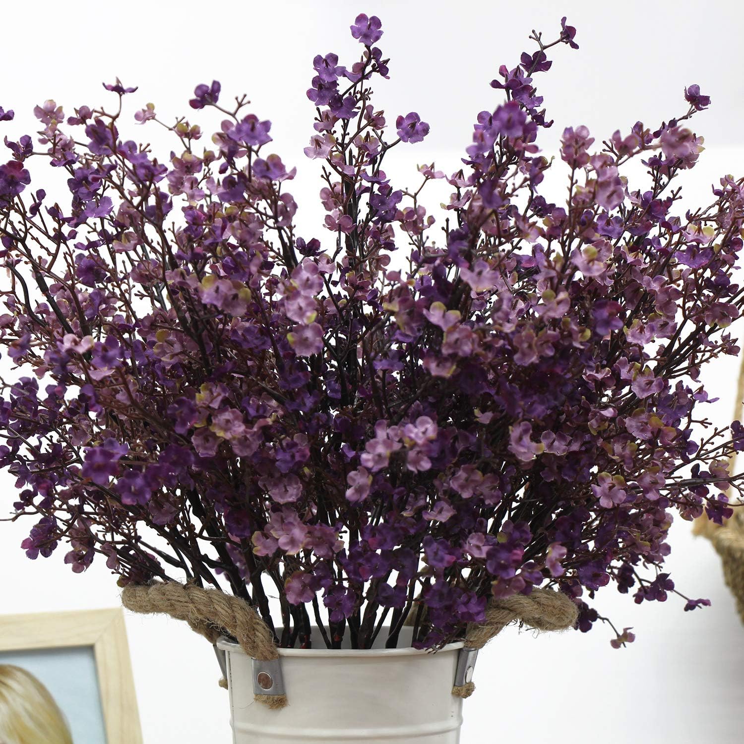 JAKY-Global Babys Breath Fabric Cloth Artificial Flowers 6 Bundle European Fake Silk Plants Decor Farmhouse Wedding Party Decoration Bouquets Real Touch DIY Home Garden (Autumn Purple-6pcs)