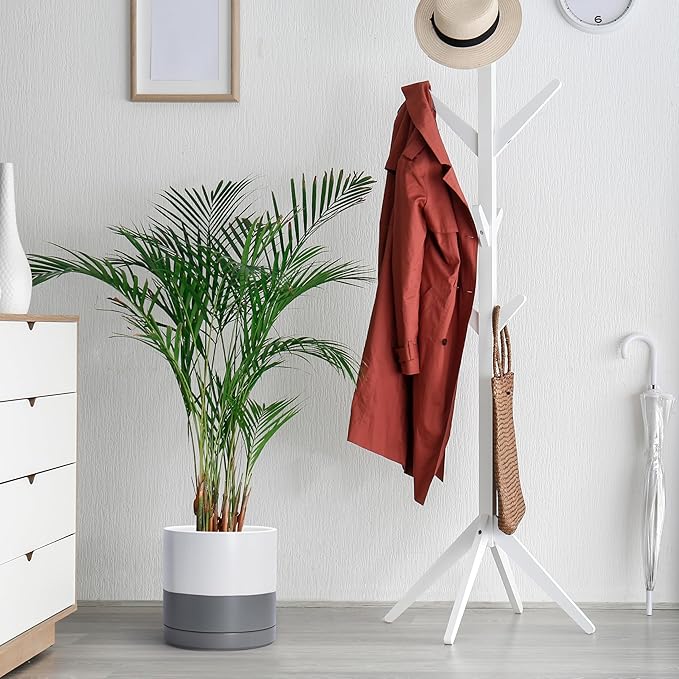 - Simple, elegant, and modern cylindrical straight round planter pot with saucer and drainage hole.