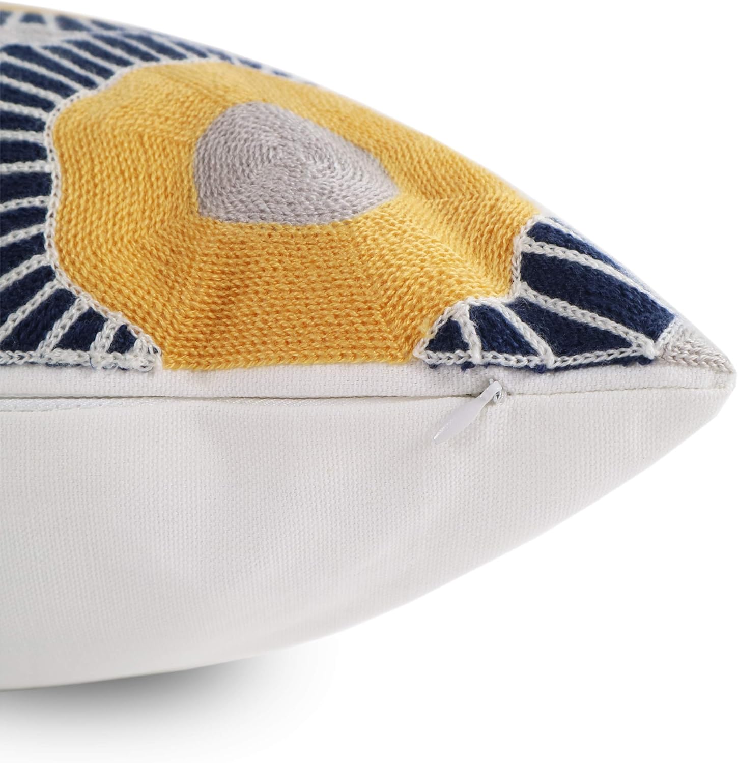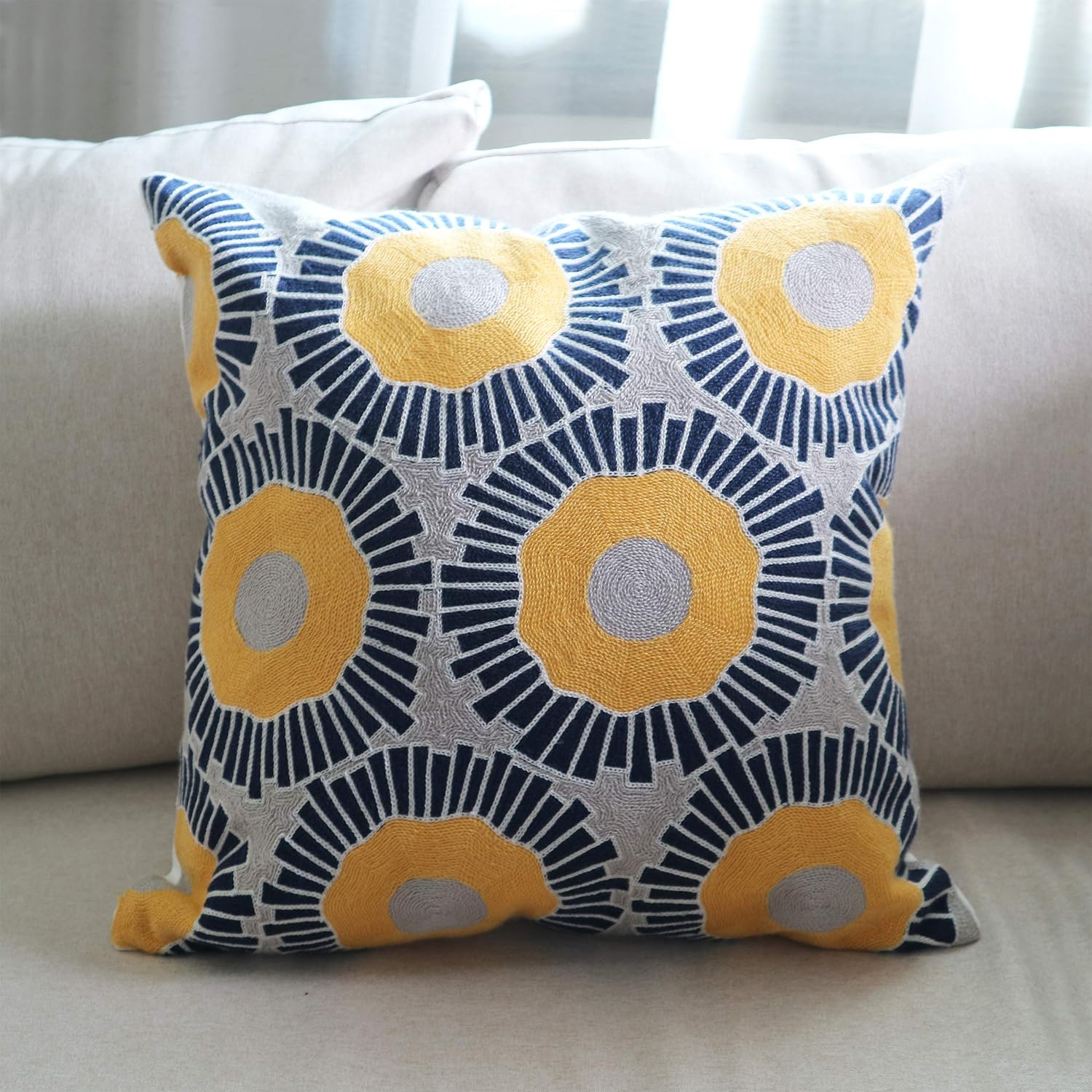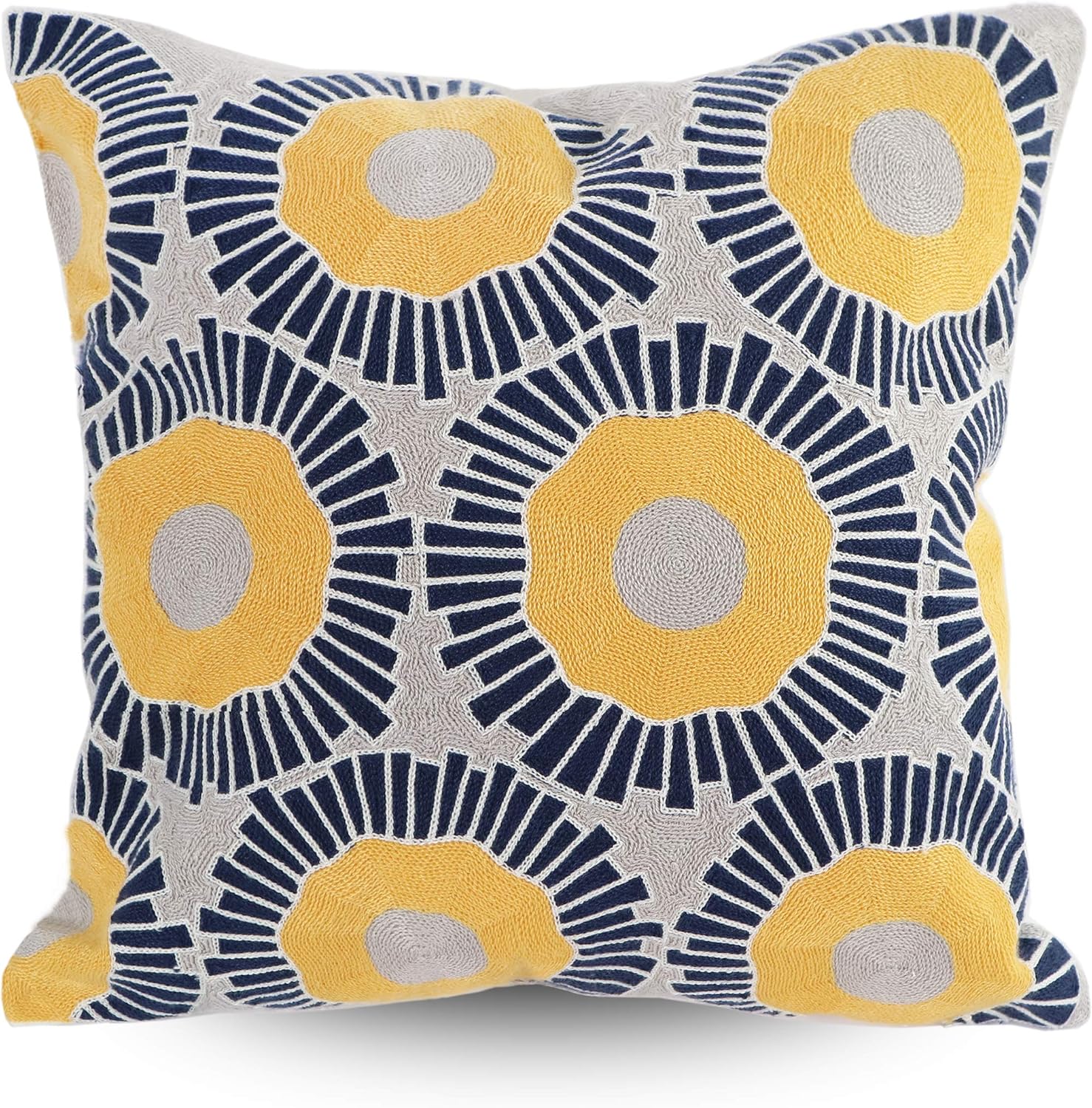 Embroidery Throw Pillow Covers 18x18 Home Decor Floor Pillow Cover for Couch Sofa Bed Room Chair 100% Cotton Cushion Cover Pillowcase 45x45cm Yellow Sunflowers Embroidered, 1 Piece