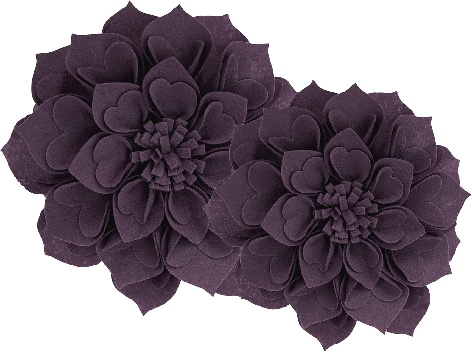 Fennco Styles Handmade 3D Heart-Shaped Petals Flower Decorative Throw Pillow Cover Only - 13" Round Violet Floral Pillow Case for Couch, Home Décor and Holiday, Housewarming Gift