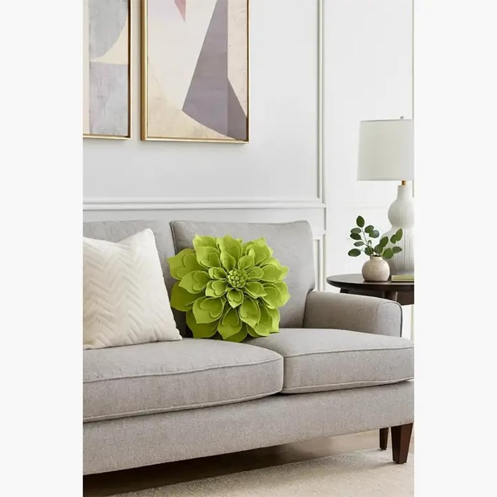 Fennco Styles Handmade 3D Heart-Shaped Petals Flower Decorative Throw Pillow Cover Only - 13" Round Lime Floral Pillow Case for Couch, Home Décor and Holiday, Housewarming Gift