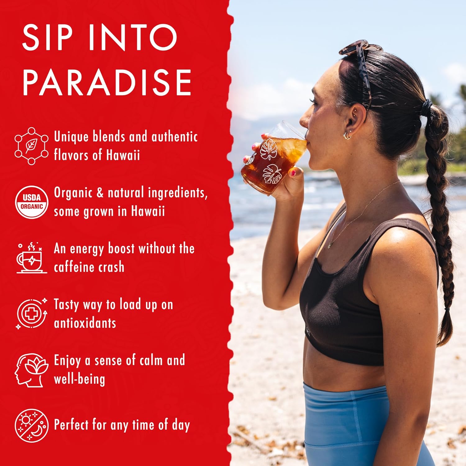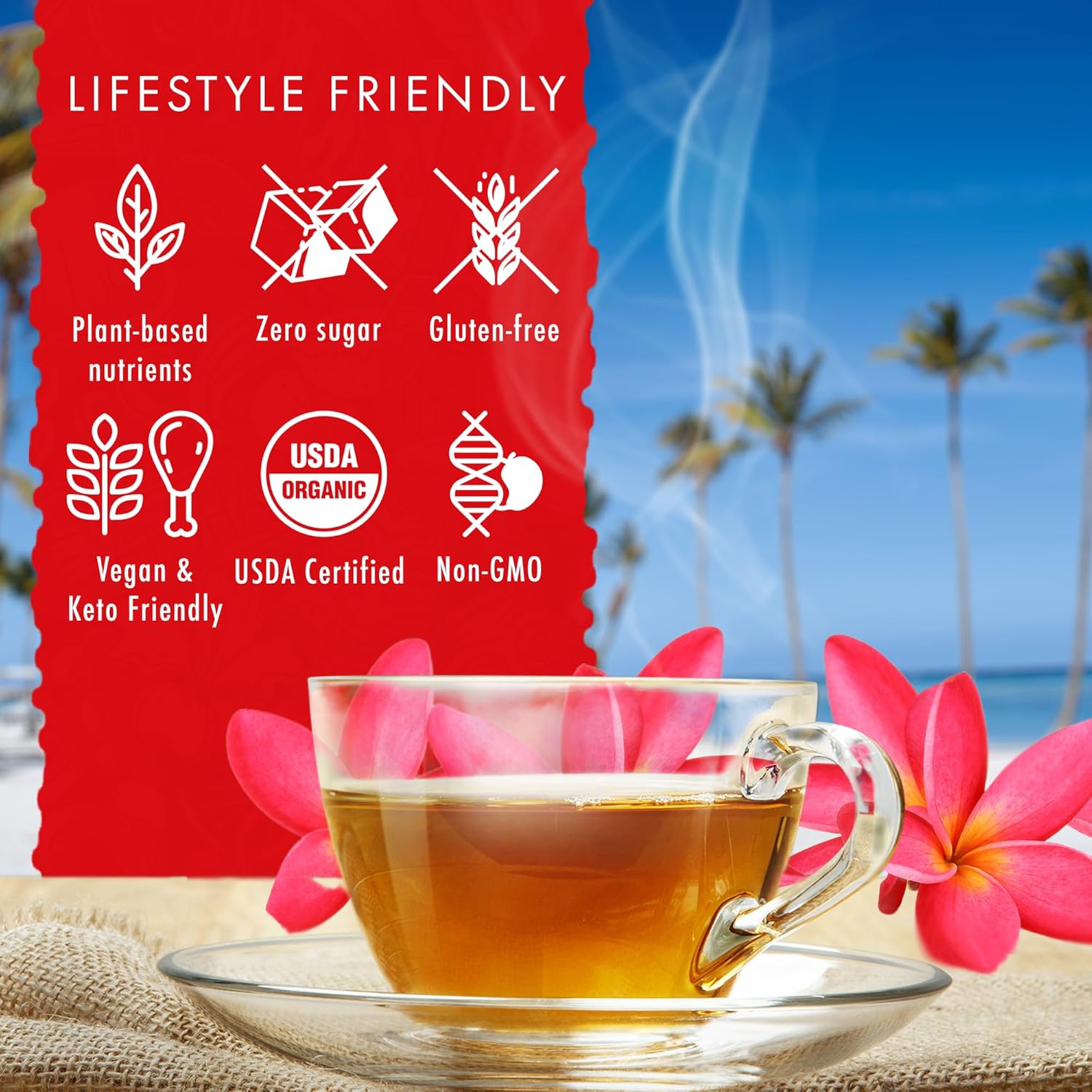Hawaiian Natural Tea - Organic Hibiscus Bliss Herbal Tea, Caffeine-Free Hibiscus, All-Natural and Antioxidant-Rich Wellness Tea, Vegan and Keto-Friendly, 20 Bags
