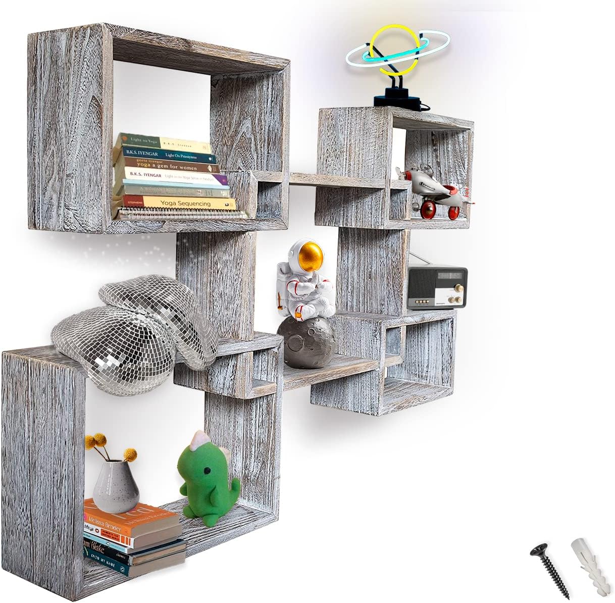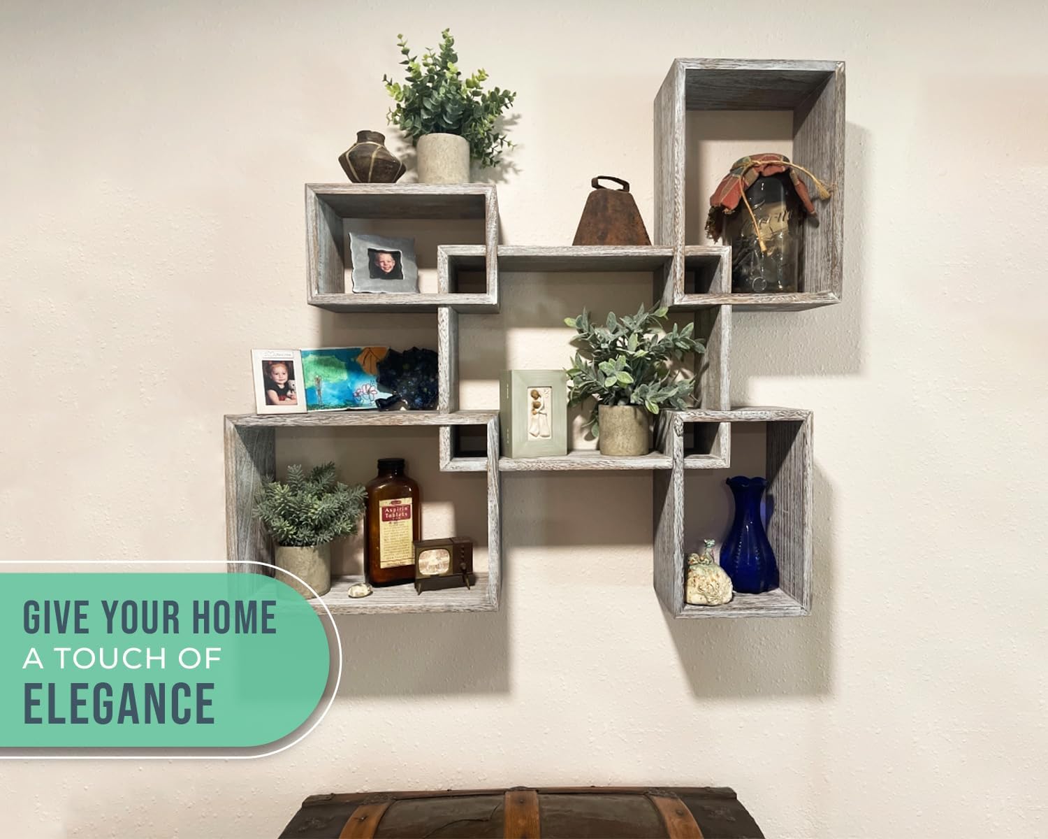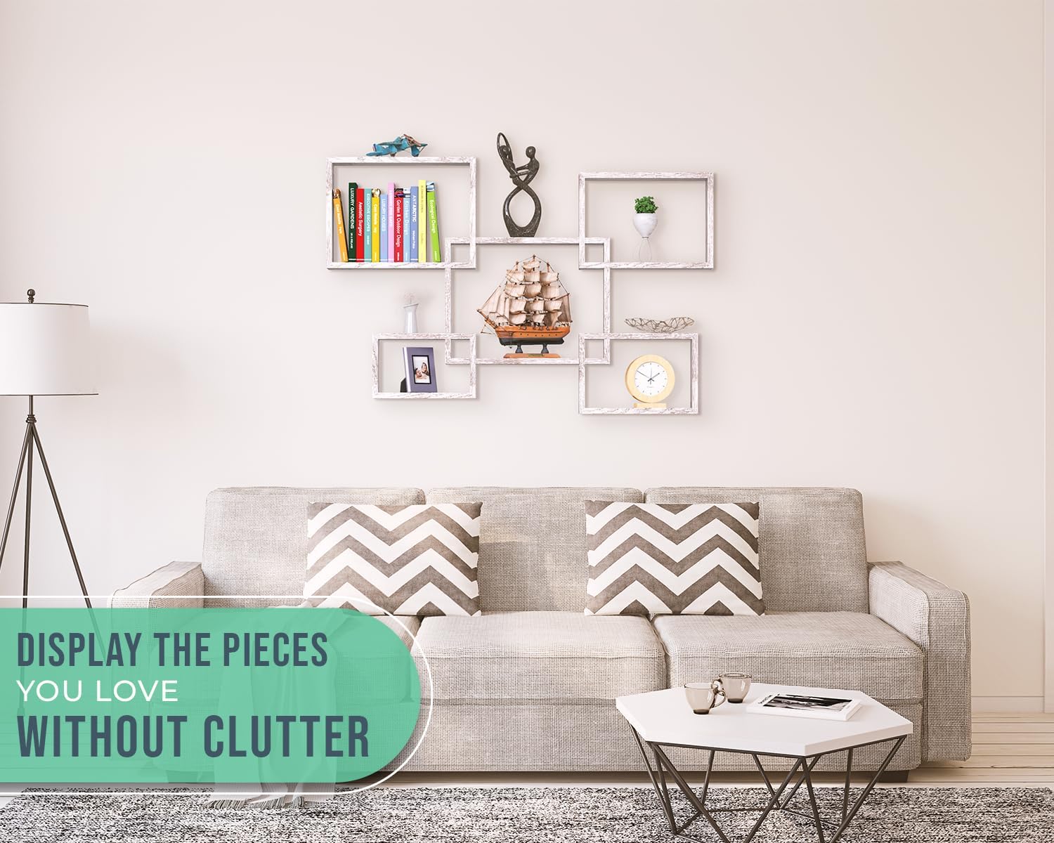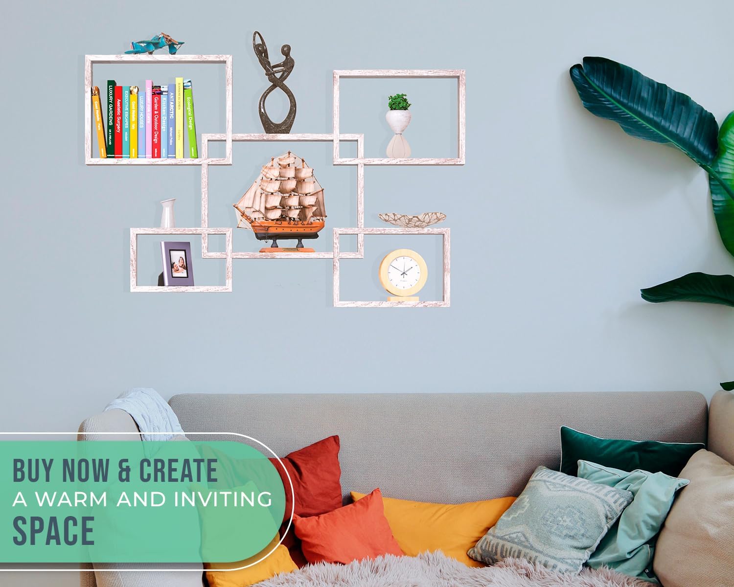 Comfify Rustic Wall Mounted Square Shaped Floating Shelves – Set of 5 Square Shelves for Bathroom, Bedroom, Living Room & More – Wall Decor Display for Home - Distressed White