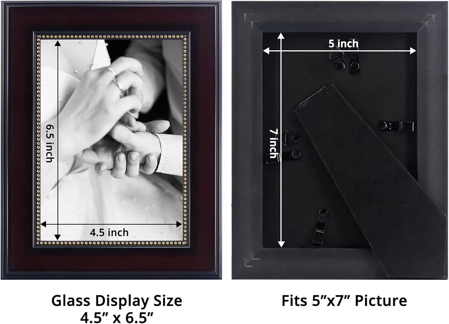 GraduationMall 5x7 Picture Frames, Real Glass, Display Photos for Wall or Tabletop, Mahogany with Gold Beads, 2-Pack