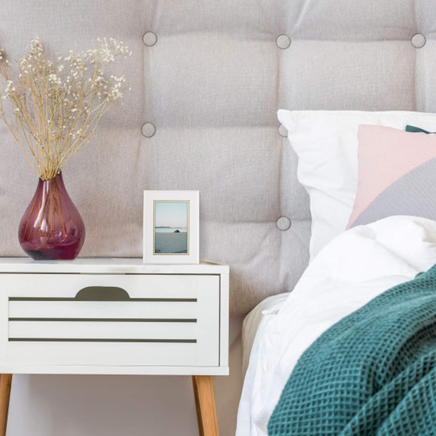 GraduationMall 4x6 Picture Frames, Real Glass, Display Photos for Wall or Tabletop, White with Gold Beads, 2-Pack