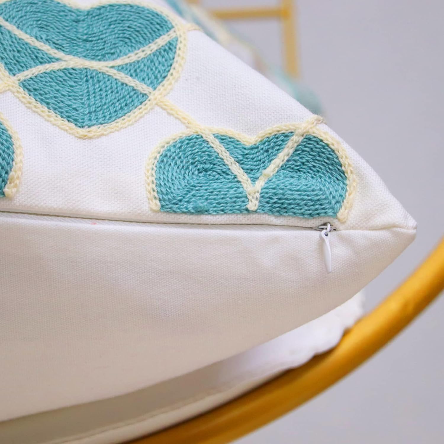 1 PCS Embroidered Throw Pillow Cover Home Decoration Cotton Decorative Square Cushion Cases for Home Sofa Bed and Chair 18 x 18 Inch (Sky Blue)