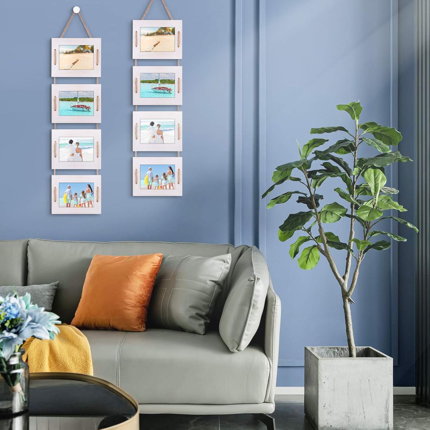 - Rustic Wooden Design: Link by retro hemp rope, this hanging picture photo frames design with sturdy solid wood and vintage wooden hooks . Not only protect well for your pictures but also never be obliterated like your precious memories.
