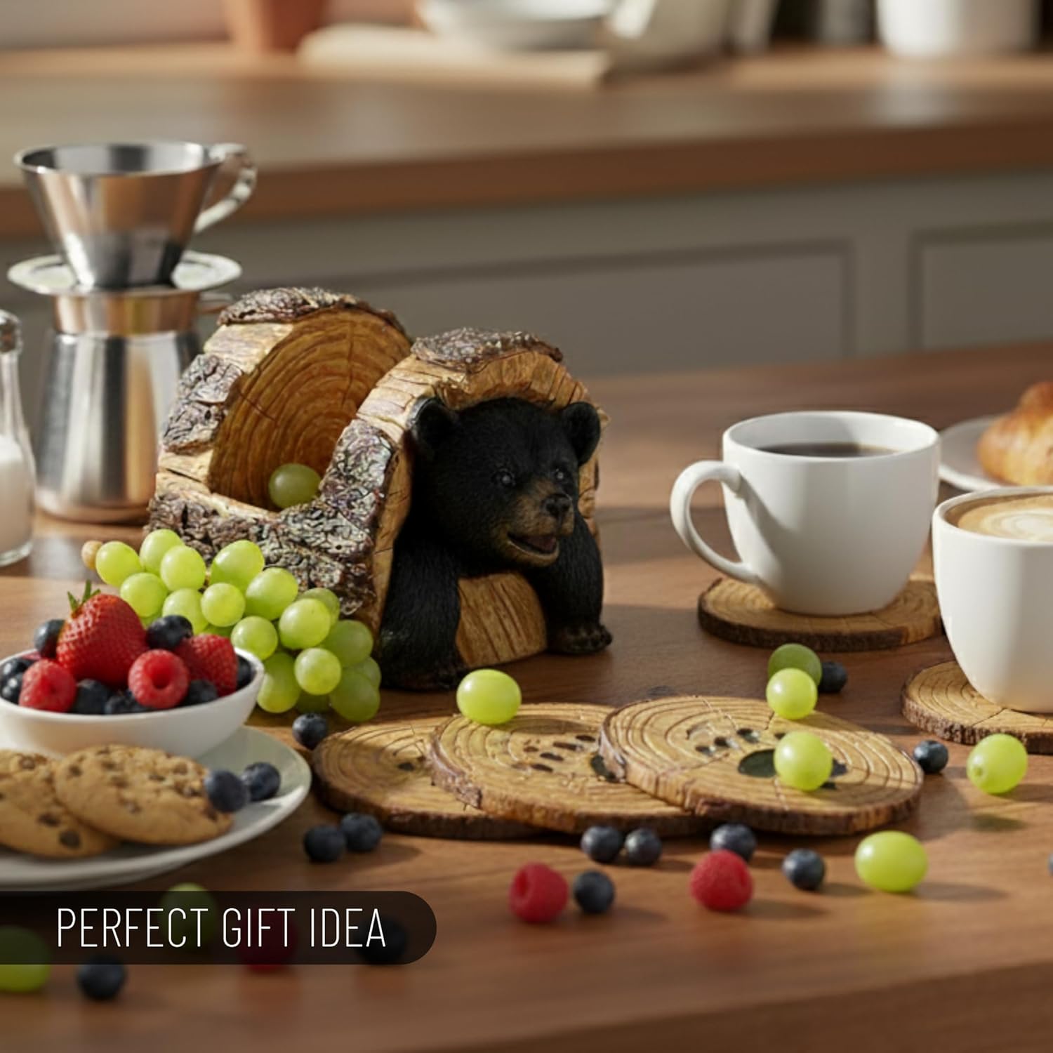 - REALISTIC DESIGN: These rustic decorations drink coasters for drinks are meticulously designed to help you leave the best impression. This unique black bear holder and barefoot coaster set are made to look like a real bear.