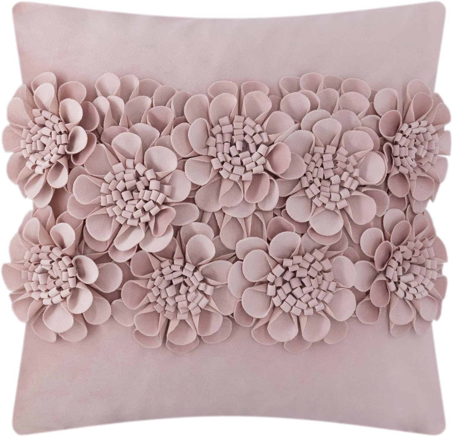 JWH Handmade 3D Flower Throw Pillow Covers Aesthetic Decorative Colorful Floral Accent Pillow Cases Stereo Pillowcase Cute Cushion for Car Bed Couch Bedroom Sofa 18x18 Inch Dusty Pink
