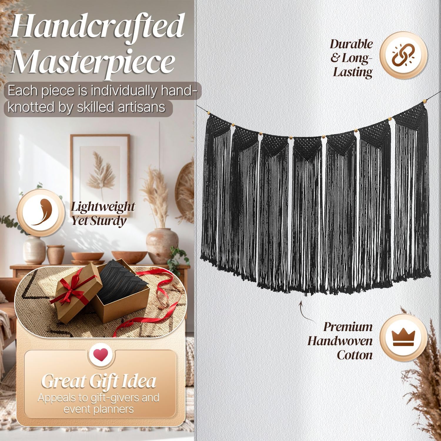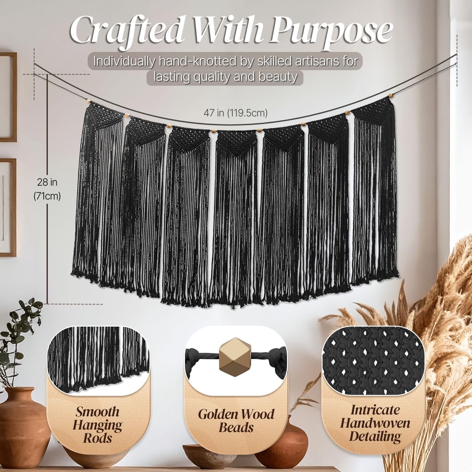 - Premium Materials and Detail - Hand-woven macrame tapestry natural cotton weaves are tough with artistic mesmerizing knots and patterns. Meticulously handcrafted, as an eye-catching work of art. It's a perfect gift for friends and family