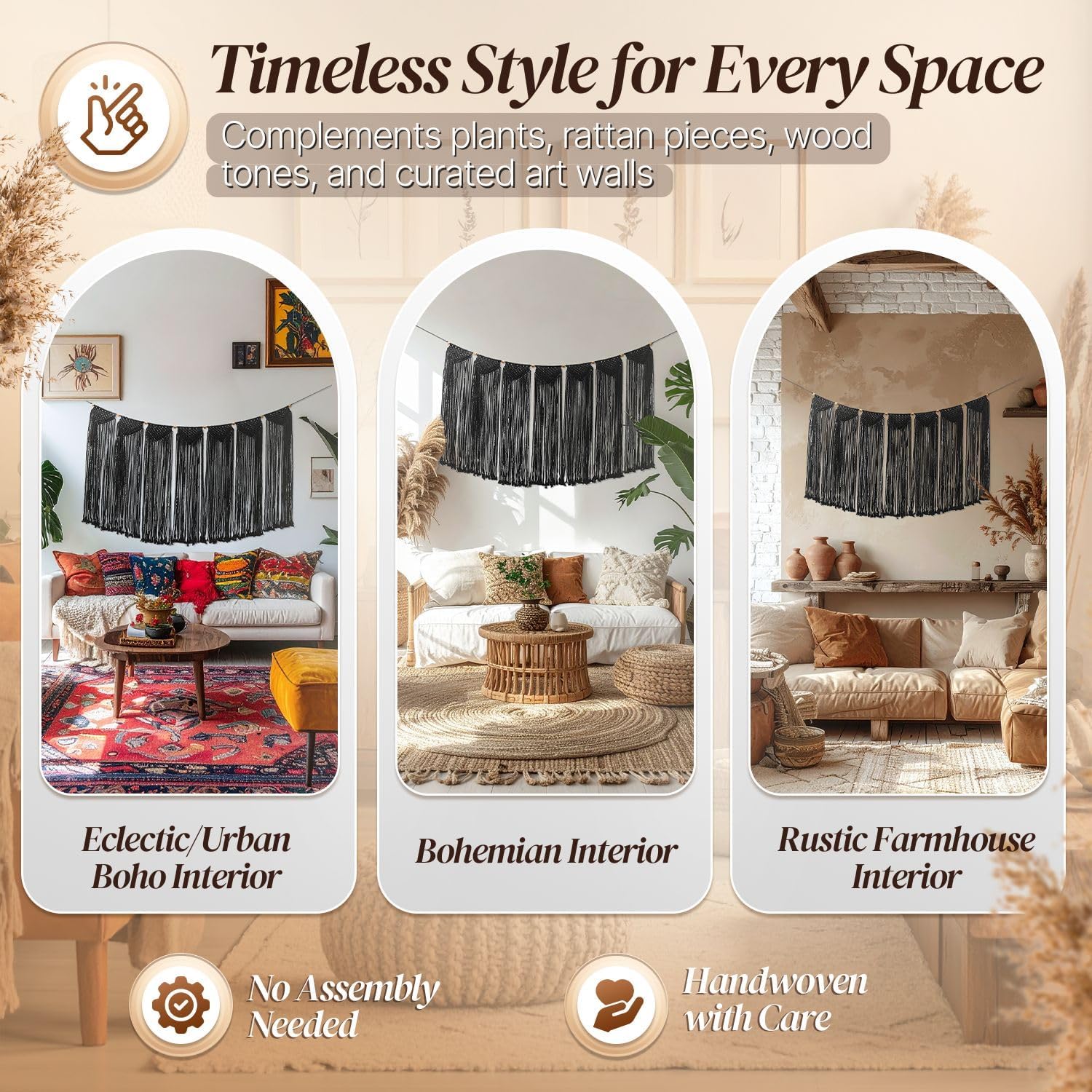 - Fits Any Room - The Wall Hanging Bunting/Banner Tapestry Art adds dimension and complements any space in your home. Bringing a bohemian folk, rustic, and vintage style to your walls. Can be placed alone also goes great with rattan mirrors and other macrame decorative items