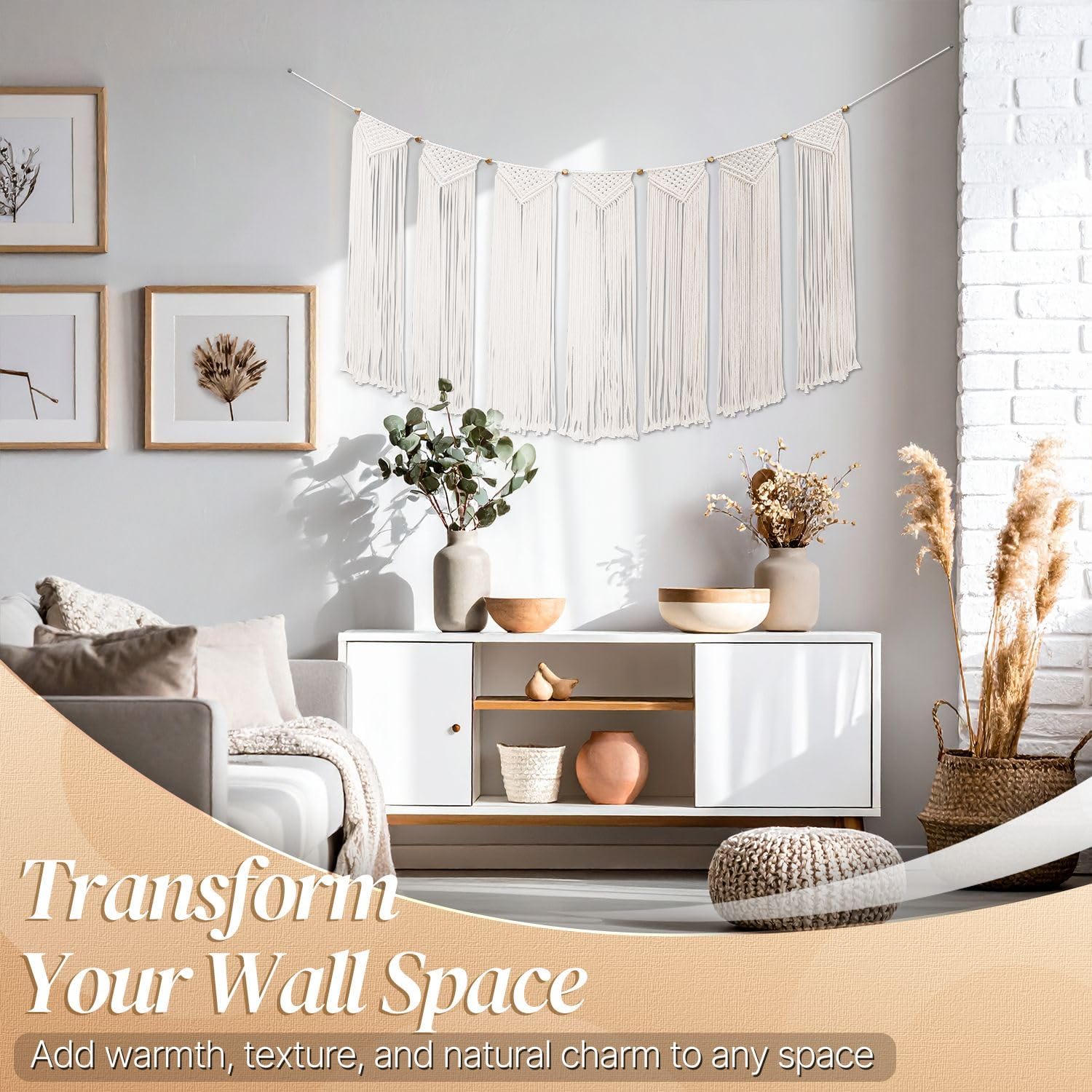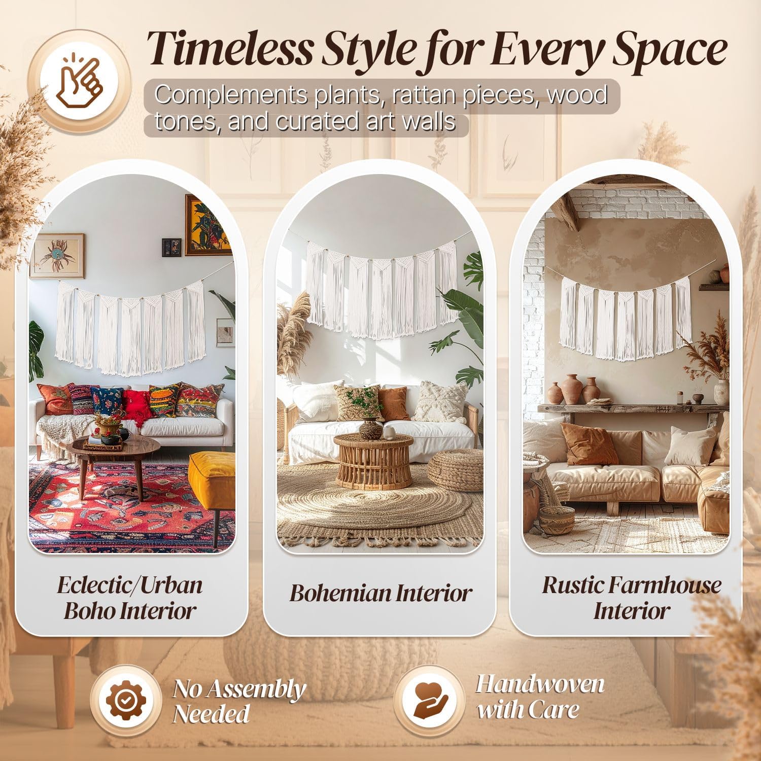 - Fits Any Room - The Wall Hanging Bunting/Banner Tapestry Art adds dimension and complements any space in your home. Bringing a bohemian folk, rustic, and vintage style to your walls. Can be placed alone also goes great with rattan mirrors and other macrame decorative items