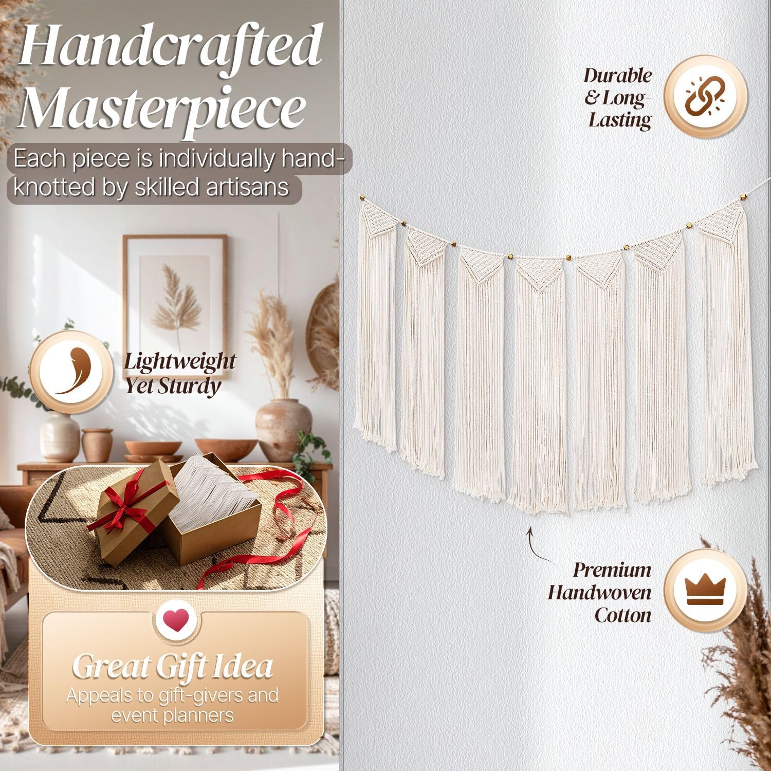 - Premium Materials and Detail - Hand-woven macrame tapestry natural cotton weaves are tough with artistic mesmerizing knots and patterns. Meticulously handcrafted, as an eye-catching work of art. It's a perfect gift for friends and family